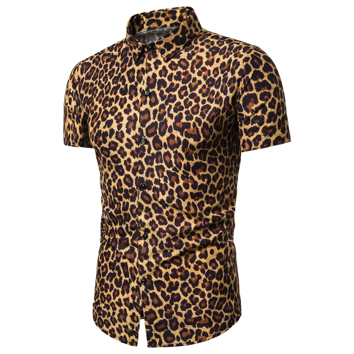 Мужская рубашка с коротким рукавом, винтажная рубашка с леопардовым...