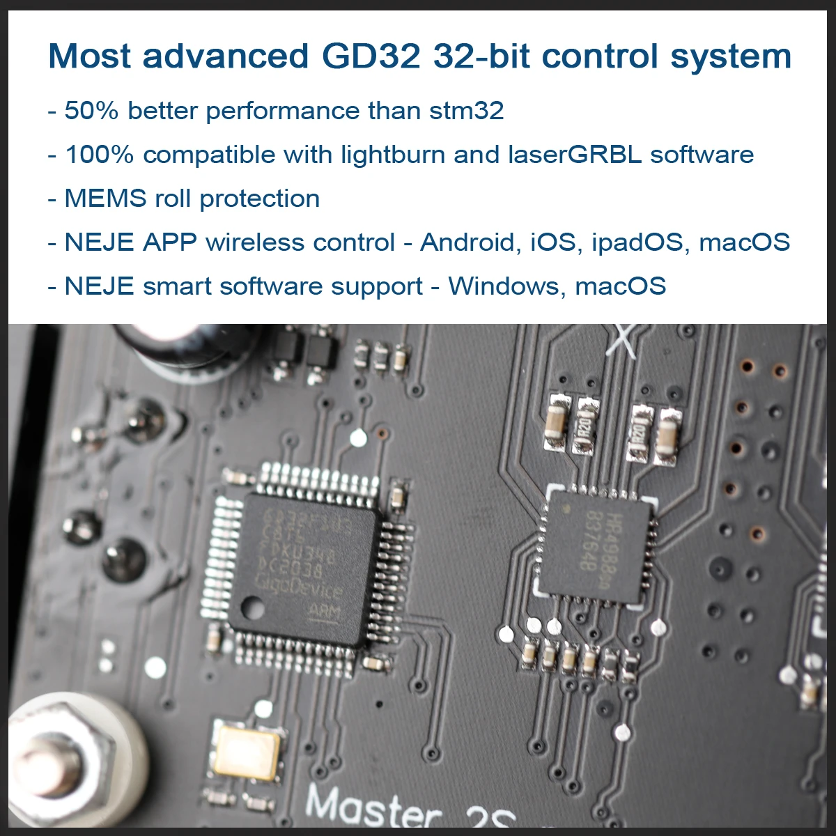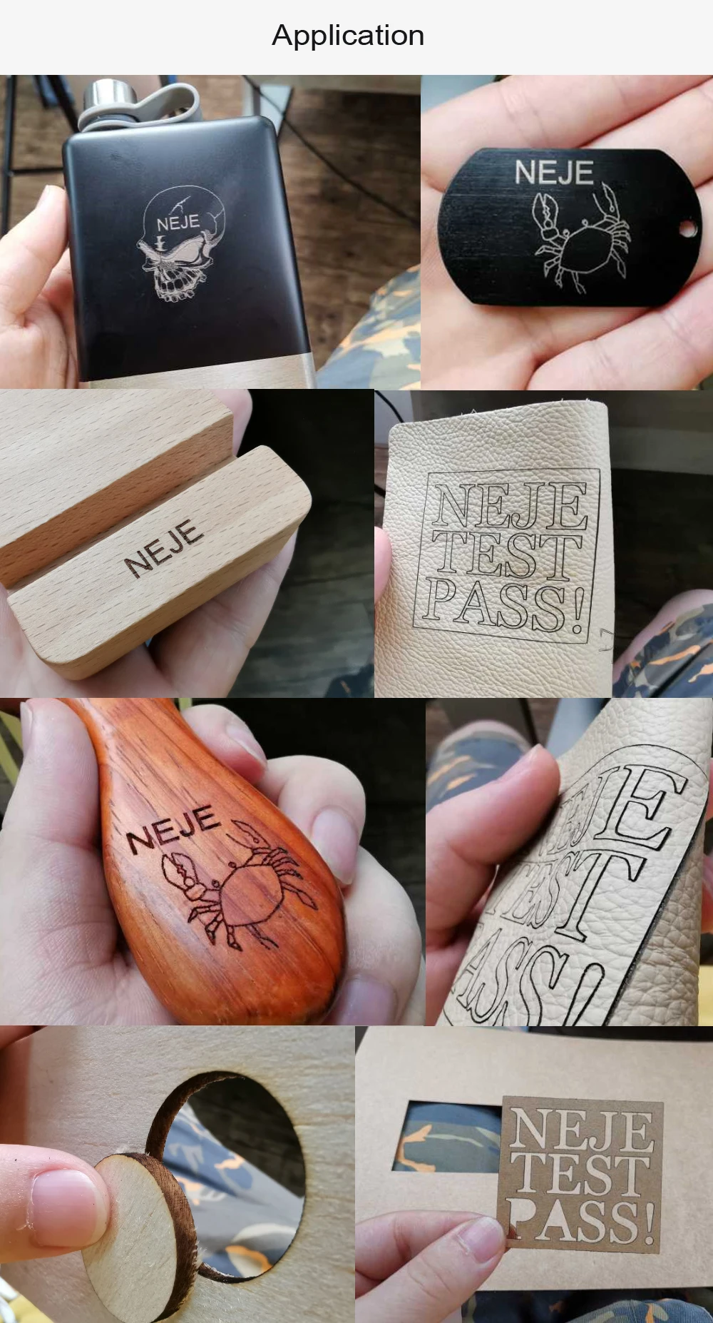 -[170x170 мм] умеренная площадь использования, и под защитой MEMS датчик защиты от вибрации, Процесс гравировки и резки может быть завершен одновременно. 2266x2266 пикселей, точность гравировки: 0,075 мм точка шаг, 339 точек/дюйм. Для завершения установки требуется всего 4 винта.-【Advanced laser module】 с помощью оптической обработки, модуль A40630 имеет небольшой и большой угол расхождения, может непосредственно гравировать нержавеющую сталь, а максимальная толщина резки достигает 18 мм. Встроенный Быстрый Интеллектуальный привод, отзывы о температуре могут быть своевременными и разумно отрегулировать тепловыделение вентилятора. Безопасный и тихий в использовании.-【More материалы, очистка 】 древесина, МДФ, кожа, бумага, хлопок и т. д. все поддерживаются. Режущие края очень чистые. Напыление крышки может выгравировать нержавеющую сталь, стекло, прозрачный акрил и так далее.-【Portable профессиональное программное обеспечение управления] 】 32-битные системы управления, самую быструю скорость может достигать 200000 мм/мин, поддерживает LaserGRBL, Лайтберн, NEJE программного обеспечения, NEJE приложение (Совместимость с Android, iOS, ipadOS, macOS), вы можете изменить его, сделав фотографии на свой мобильный телефон или выбрав изображения из альбома, чтобы завершить работу быстро, NEJE предоставляет бесплатные услуги по обновлению программного обеспечения.