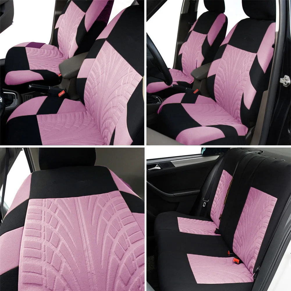 Набор чехлов для автомобильных сидений с вышивкой, универсальные, подходят для большинства автомобилей, с деталями дорожек, Стайлинг, защита для заднего сиденья автомобиля