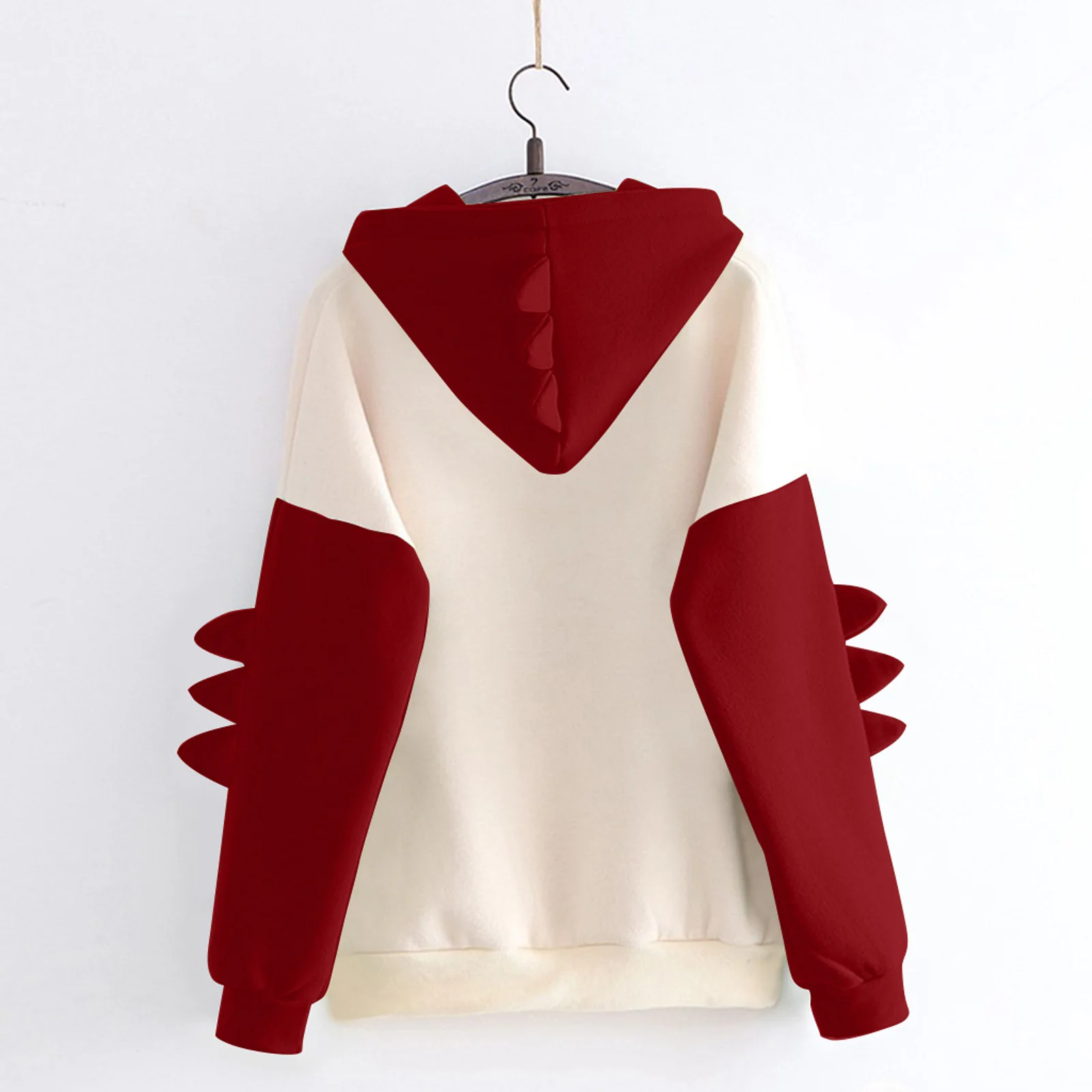 Женская толстовка с капюшоном, зимняя толстовка с динозавром, в сти...