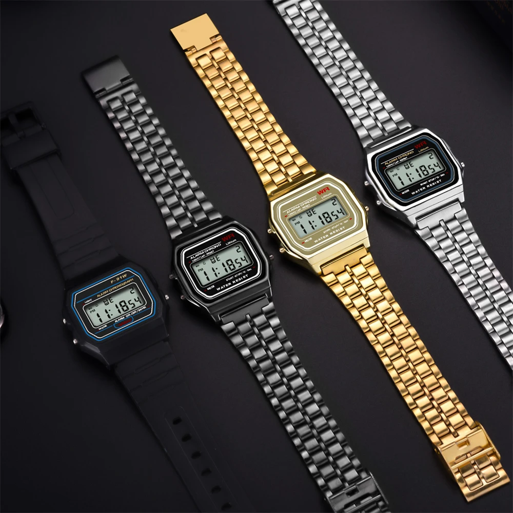 Часы F91W, многофункциональные, со стальным ремешком, светодиодный,...