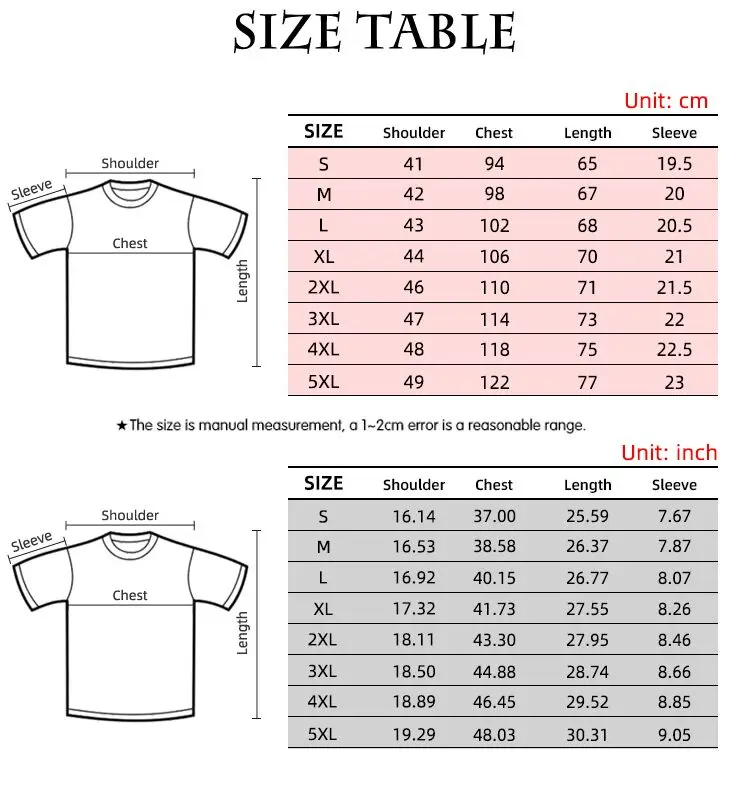 Size(Asian size)XS,S,M,L,XL,XXL,3XL,4XL,5XL