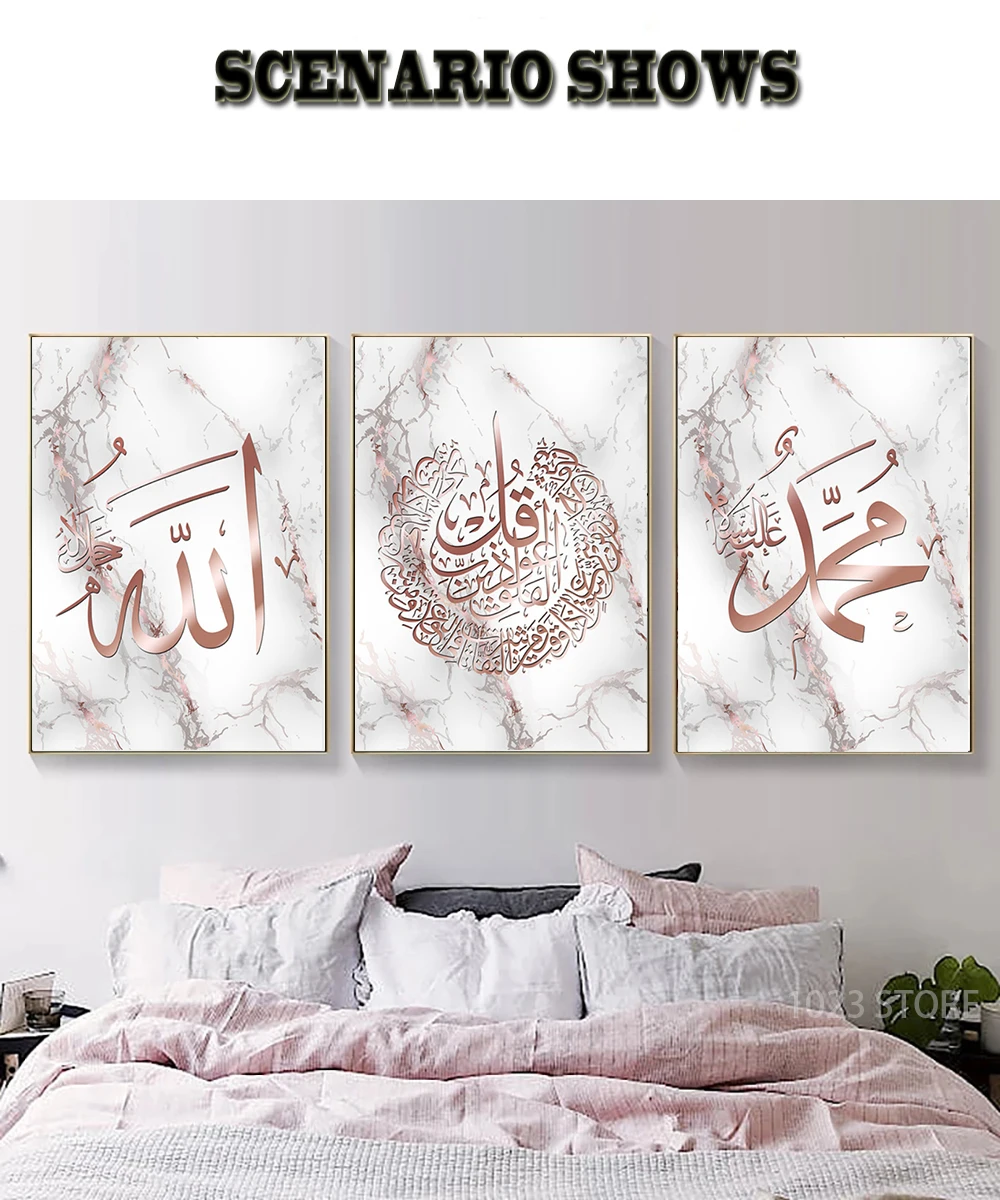 Мусульманская каллиграфия розовый, золотой, мраморный Al Kursi мусульманский Рамадан Плакат Картина на холсте картина роспись для современного домашнего декора