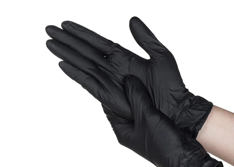 100 шт., черные нитриловые перчатки