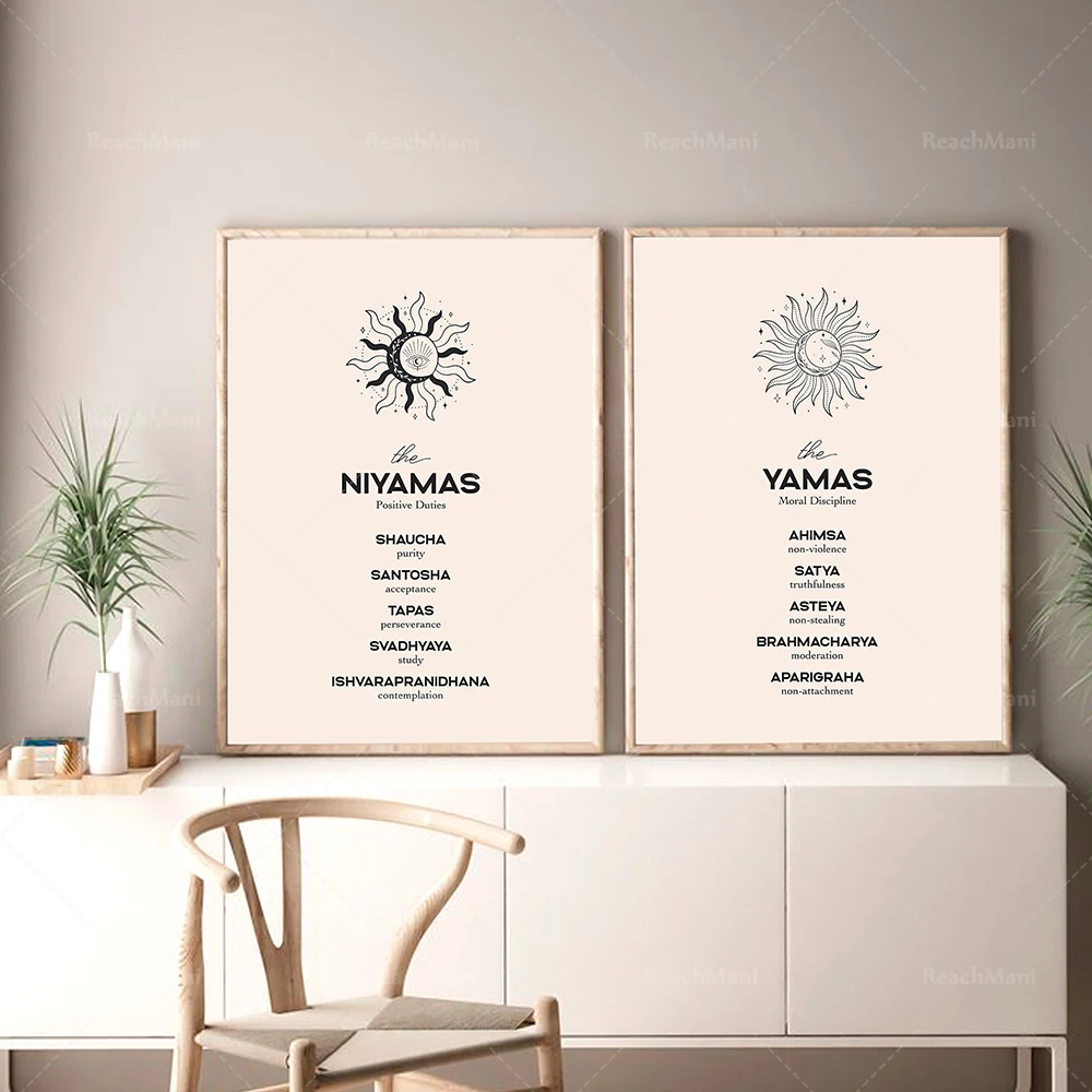 Yama Niyama набор отпечатков of 2 Yoga, настенное искусство, постер для йоги, 8 конечностей йоги, домашний декор, духовный декор, печатное искусство