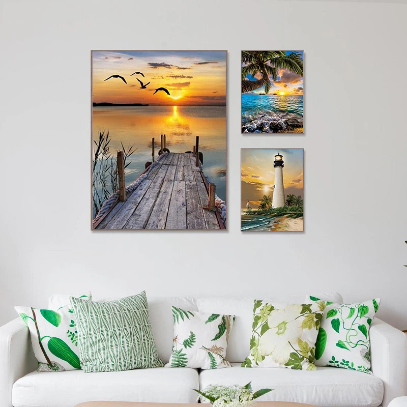 Алмазная вышивка сделай сам 5D побережье живописная полноразмернаякруглая Алмазная Картина Набор для вышивки крестиком Мозаика пляж домашнее фото Настенный декор