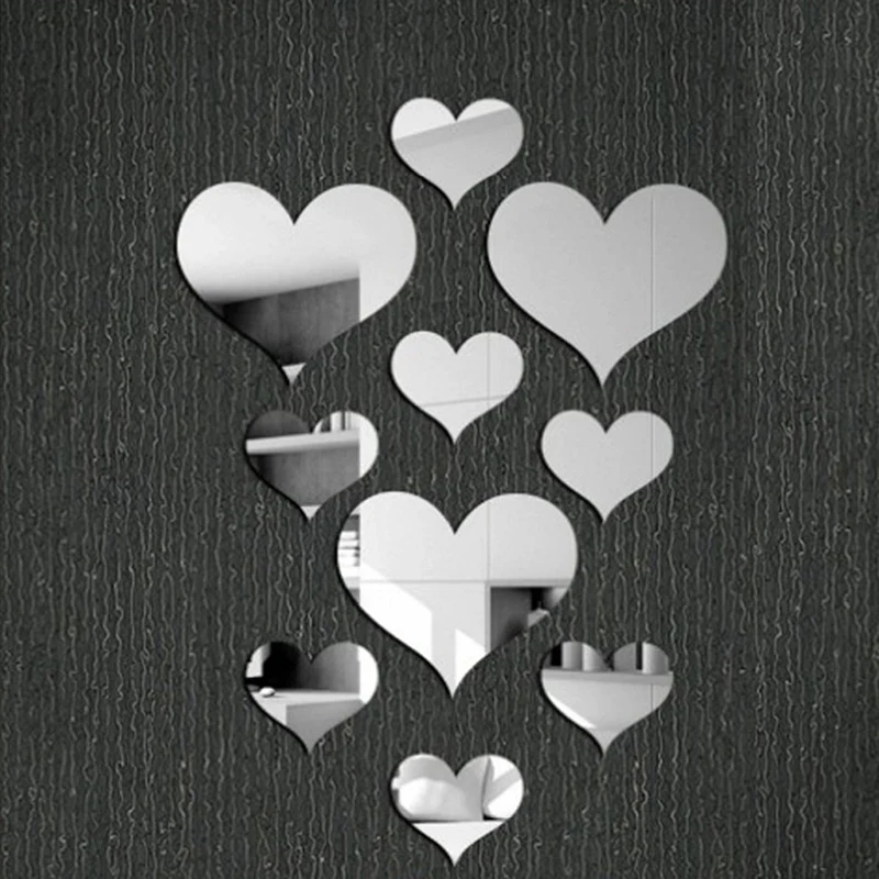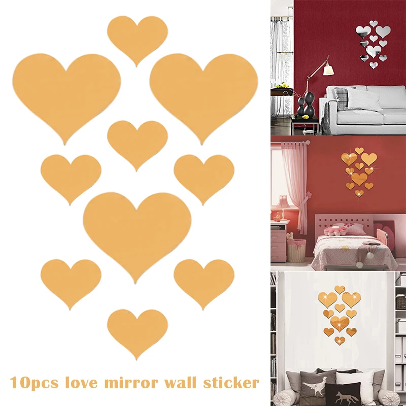 10 шт., зеркальные Акриловые Настенные 3d-наклейки в форме сердца