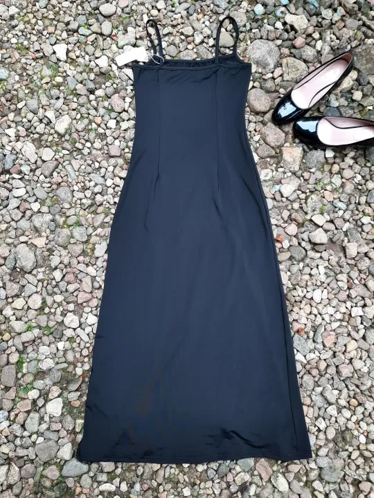 Платье на бретелях с разрезом от Vamos Todos Official Store. Посылка приехала за 22 дня,платье былo упаковано в целофановый пакет. Чёрное платье,которое должно быть у каждой девуши/женщины.В магазине ещё и красное есть.Я выбрала чёрное,размер S,на мои параметры 80/70/90,рост 158см.,село отлично по фигуре. Материал полиэстер 100%,довольно приятный к телу,нет никакого дискомфорта.Швы ровные,нигде ничего не торчит.Бретели не регулирубтся.У платья имеется сбоку разрез,который подчёркивает Вас и Ваш образ.Я очень рада,что заказала это платье!Рекомендую!