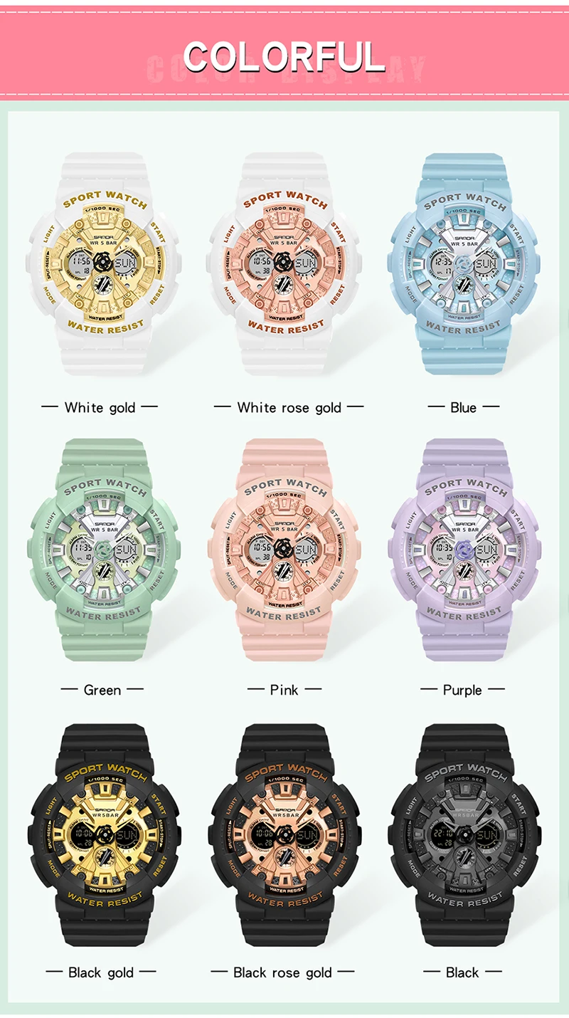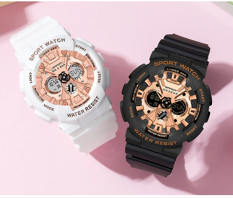 Женские спортивные часы SANDA, часы цвета розового золота и белого ...