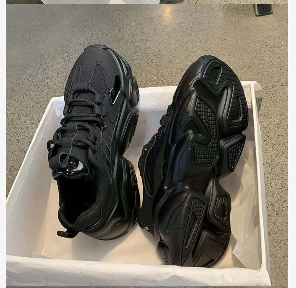 RASMEUP Осень-Зима Черные спортивные женские кроссовки на толстой п...