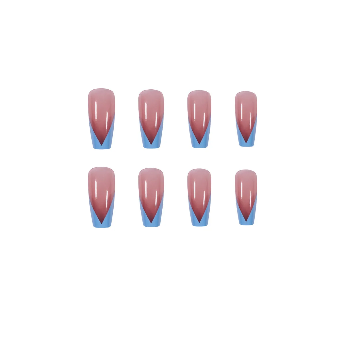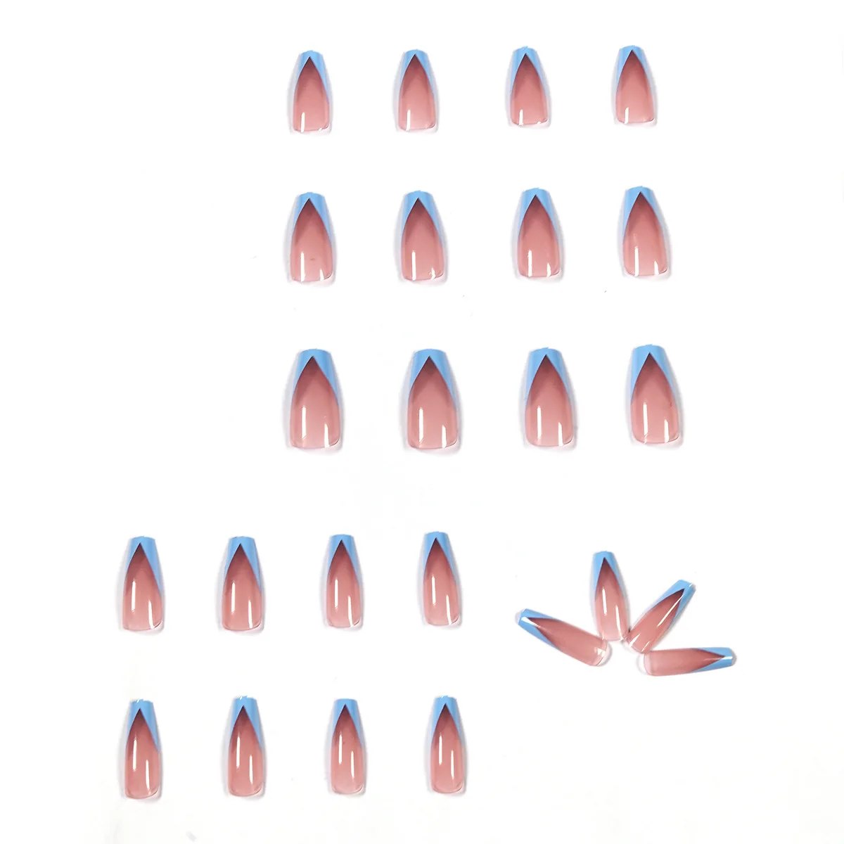 Накладные ногти с клеем, длинные плоские светло-голубые, 24 шт.кор.