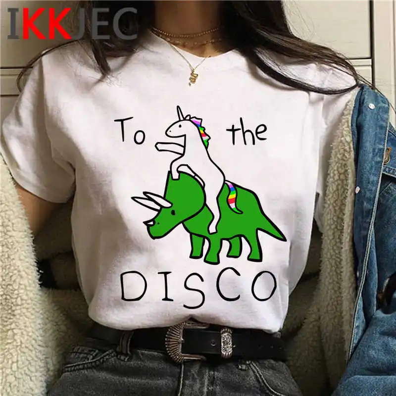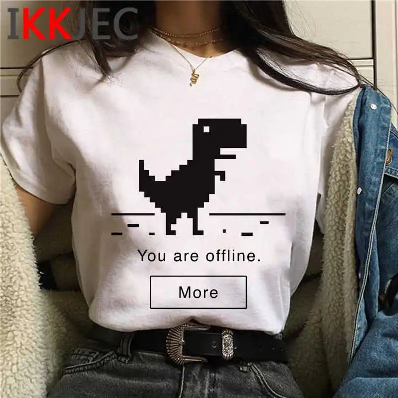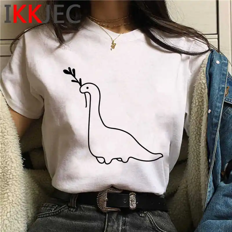 Футболка-динозавр Топ, женские футболки ulzzang, белая футболка, ле...