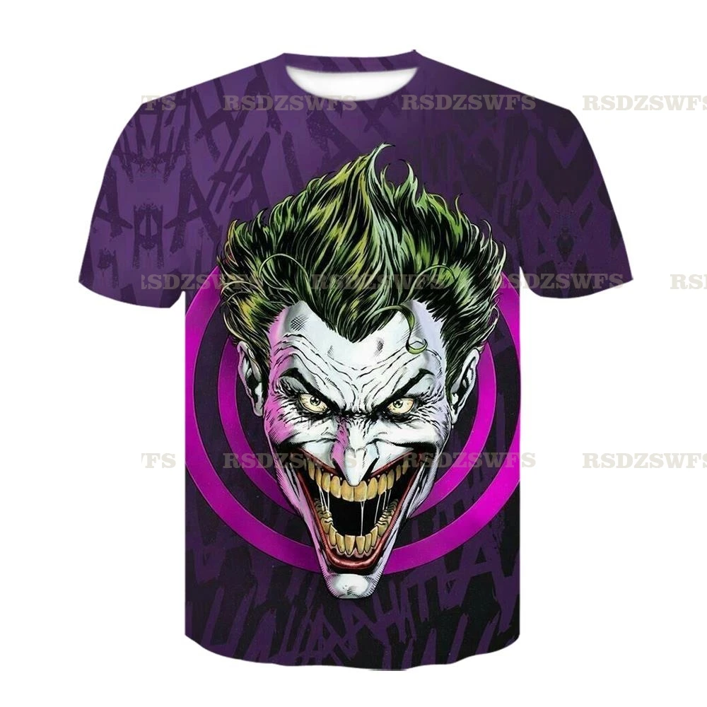 2021 модная футболка с 3D принтом, детская одежда, футболки с изображением лица Джокера, модная футболка клоуна с коротким рукавом для косплея, мужскиеженские топы