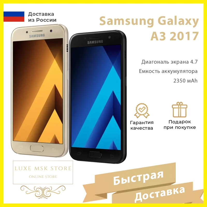 Смартфон Samsung Galaxy A3 (2017) 216Gb 4.7",2350 mAh, 13+8 Мп,Google Play,оригинал,мобильный телефон