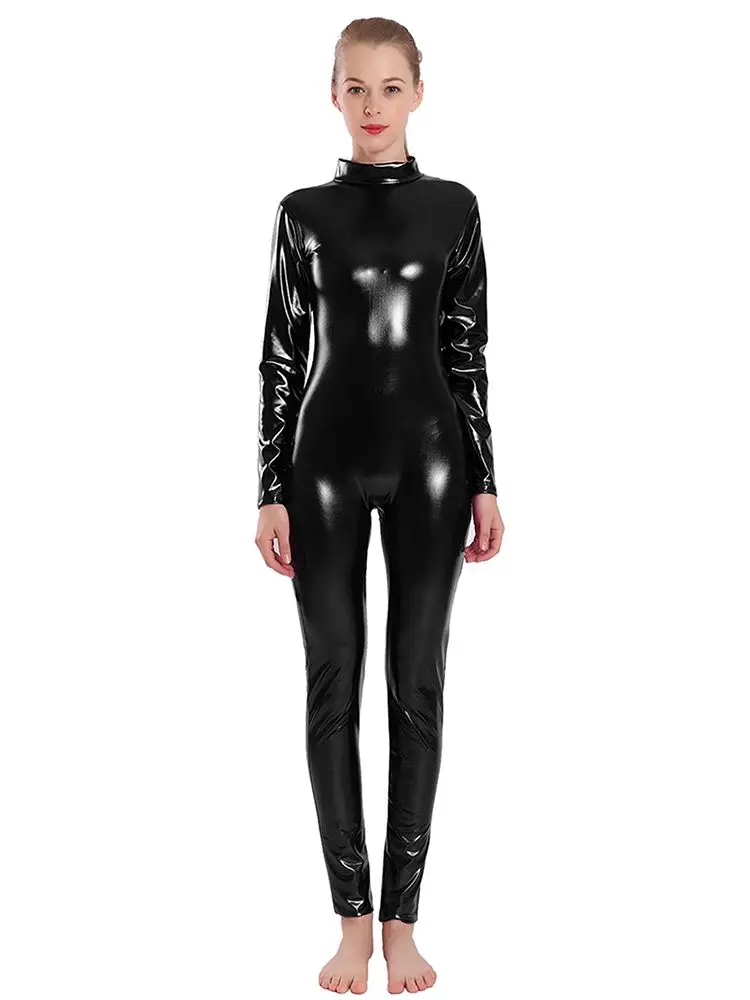 Женские блестящие комбинезоны цвета металлик ЮНИТАР с длинным рукавом макет шеи балетные комбинезоны