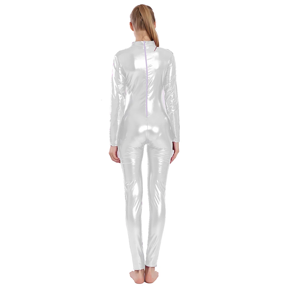 Женский Блестящий комбинированный костюм Aoylisey с металлическим орнаментом, с длинным рукавом и высоким воротом, костюм для косплея Zentai, костюм для взрослых, костюм для анимационного костюма, танцевальная одежда