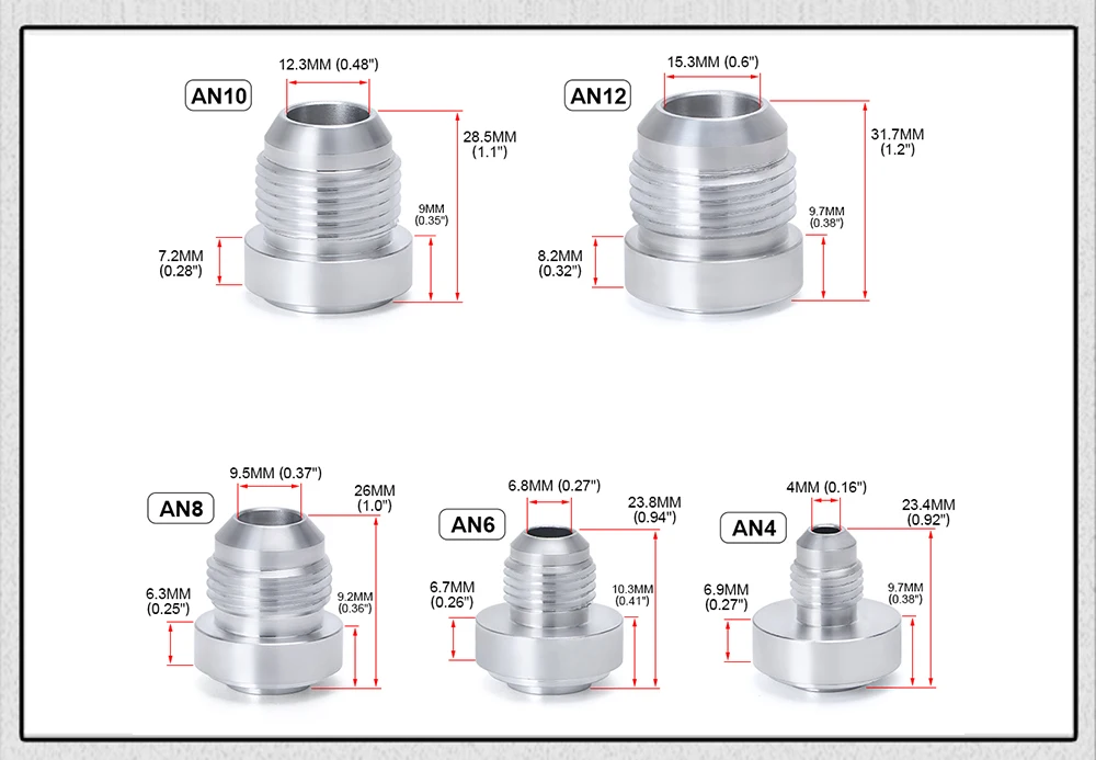 Сварные булочки нитробный шланг фитинг серебро*Размер:AN 4 6 8 10 12 16