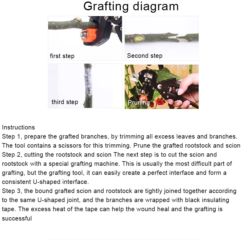Особенности:Набор инструментов 1,2 в 1: инструмент для прививки включает секатор и Гильотинный нож для прививки. Во-первых, это позволяет удалить лишние листья и веточки и подготовить растения к прививке. Также вы можете точно нарезать прививочный шток с помощью специальной гильотины для прививки.2. Высококачественные материалы: Сменные резаки для прививки для чистого резания; Острые резаки #45 из прочной высокоуглеродистой стали и пружина для длительного использования; Высокопрочная эргономичная ручка из АБС-пластика для удобного удержания.3. Высокий уровень выживания: разрезы, сделанные этим прививочным инструментом, идеально сочетаются друг с другом для максимального контакта cambium, что значительно улучшает выживание.4. Простота обучения и эксплуатации: любые зеленые руки прививки смогут использовать инструмент за несколько минут, не нуждаются в руководстве профессионала, хотя в сумку входит руководство на английском языке.5. Супер Экономия времени: вырезать, соединить, скотч, и прививка выполнена. Вам не придется брить ножом одни и те же наклоны на обеих ветвях, как в старом трудоемком и трудоемком способе.