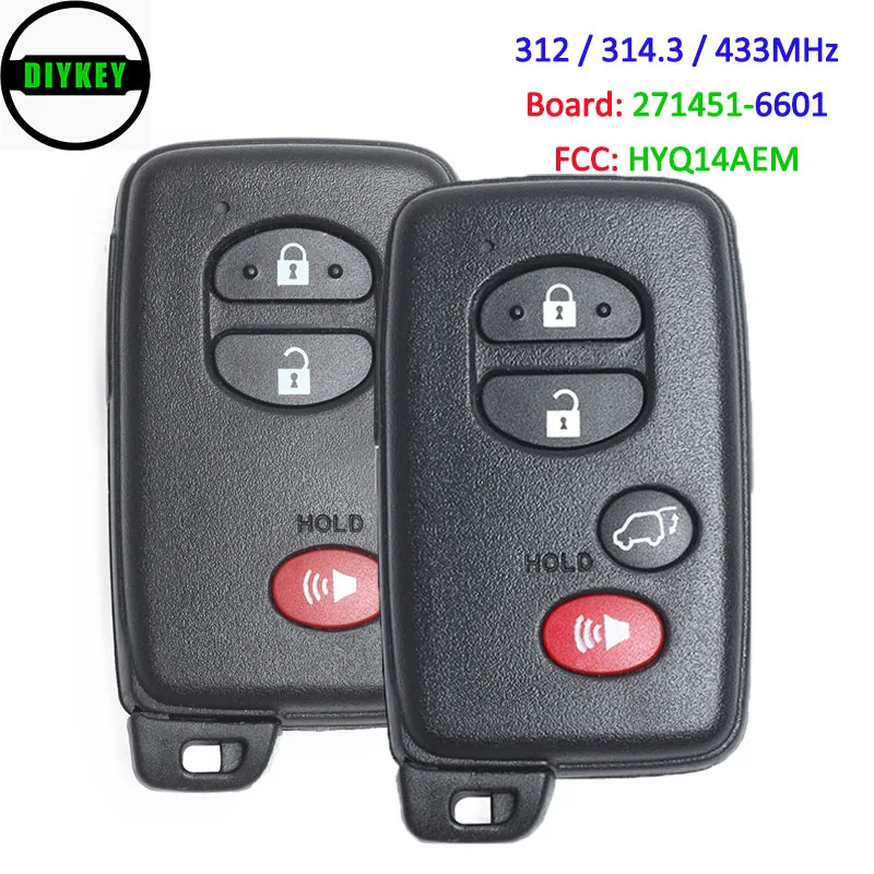 Пульт дистанционного управления DIYKEY: 271451-6601, 312 МГц, 314 433 МГц, для Toyota Land Cruiser 2013, 2014, 2015, FCC: HYQ14AEM