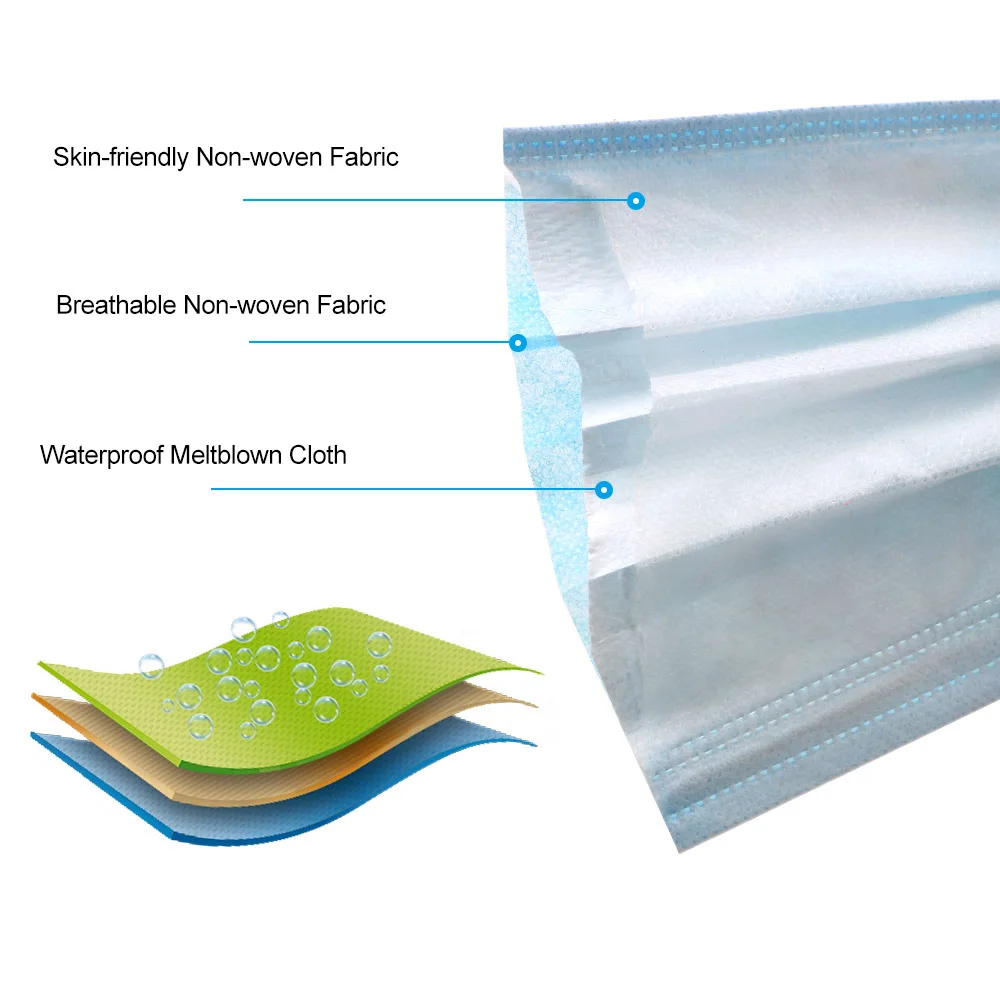Маски одноразовые, трехслойные, дышащие, нетканые, 10-100 шт.