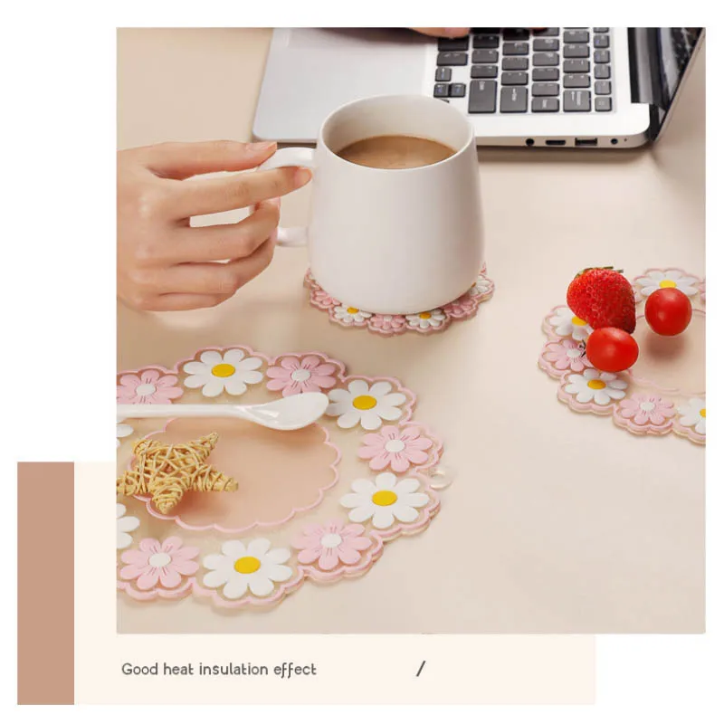 Силиконовый коврик для напитков с милой маргариткой, теплоизоляцион...