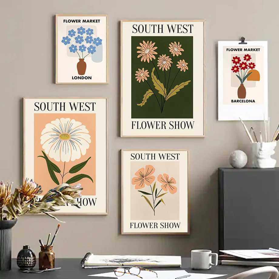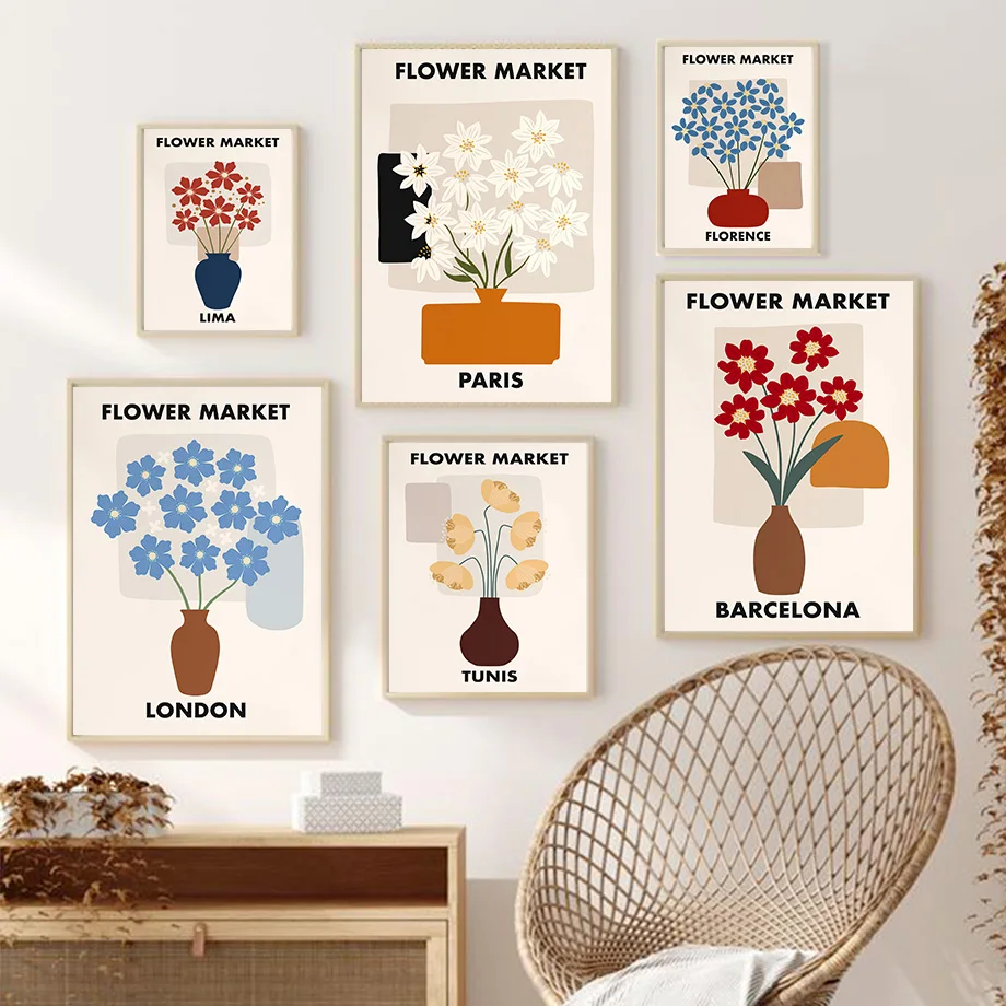 Цветочный рынок, клевер, Калла, тюльпан, Маргаритка, настенная Картина на холсте, скандинавские постеры и принты, настенные картины для декора гостиной