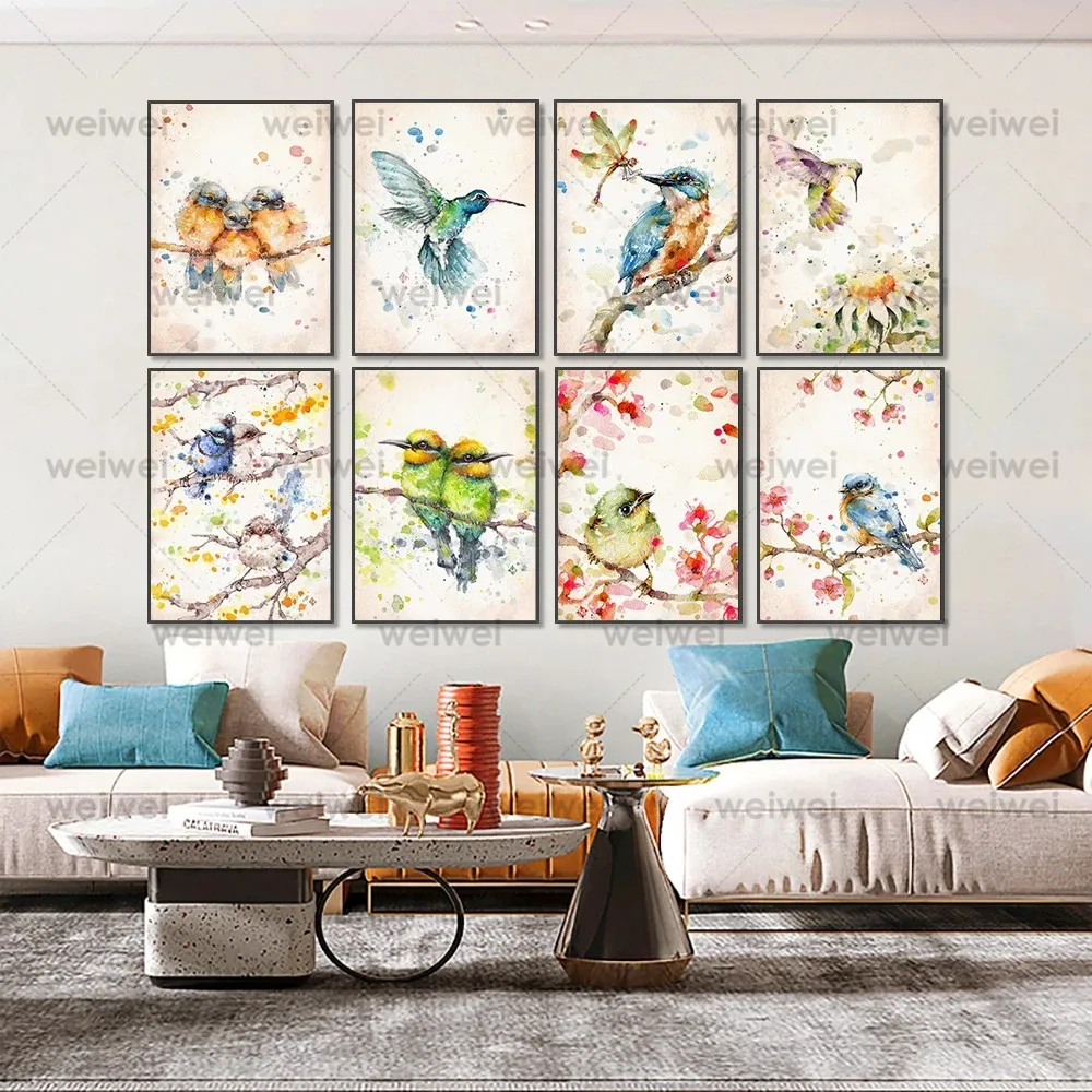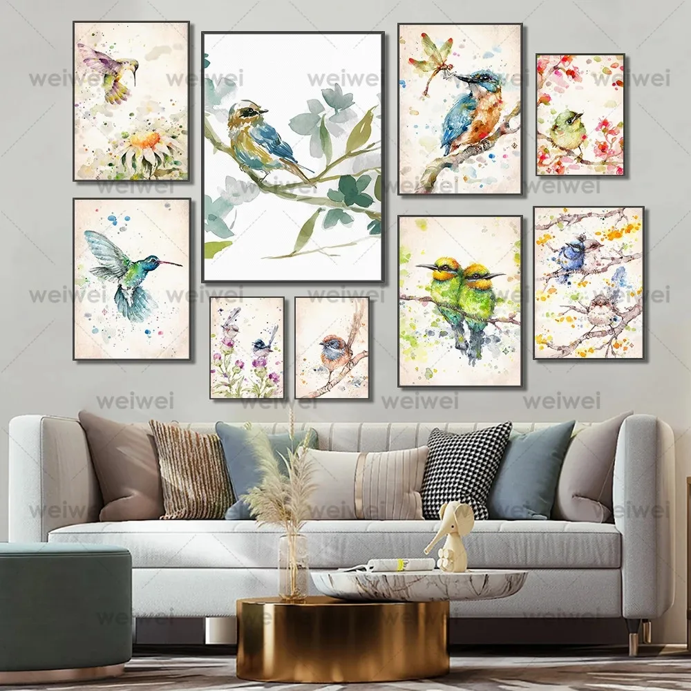Акварельная живопись, животное, птица, колибри, настенный художественный постер на холсте, печатная картина для дома, гостиной, декоративная живопись