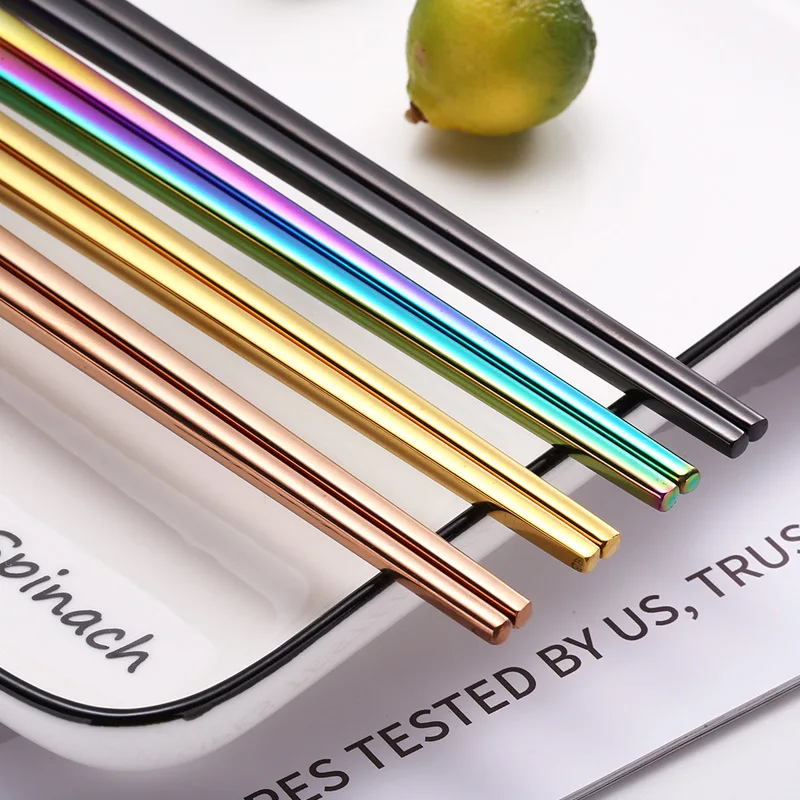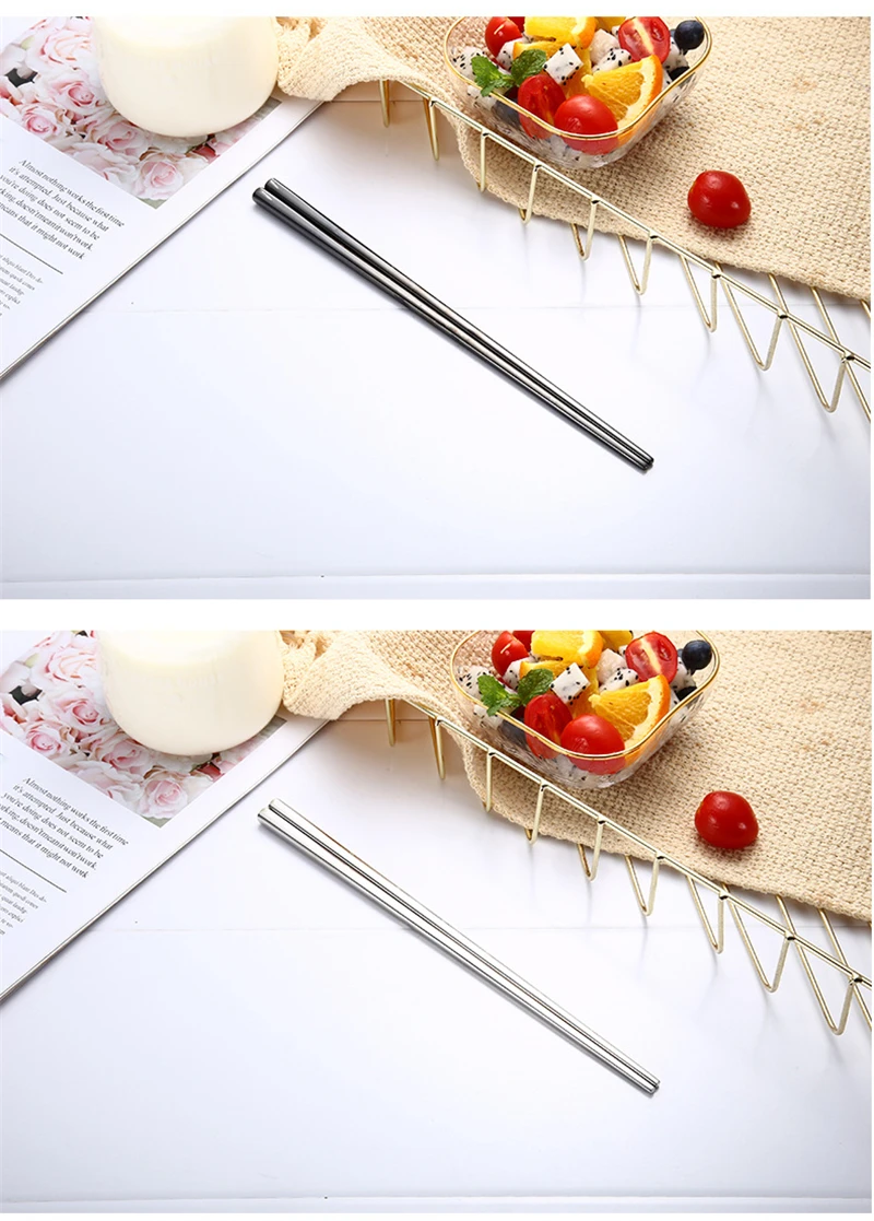 1 пара квадратных палочек для еды из нержавеющей стали, Нескользящие металлические китайские палочки для суши, палочки для еды, многоразовая посуда, кухонный инструмент