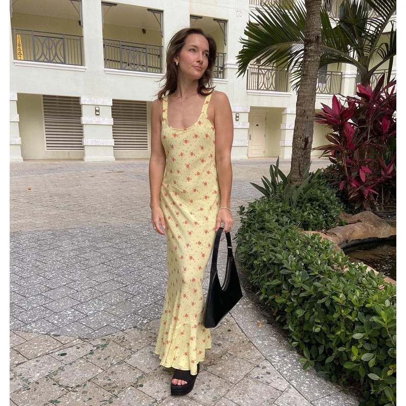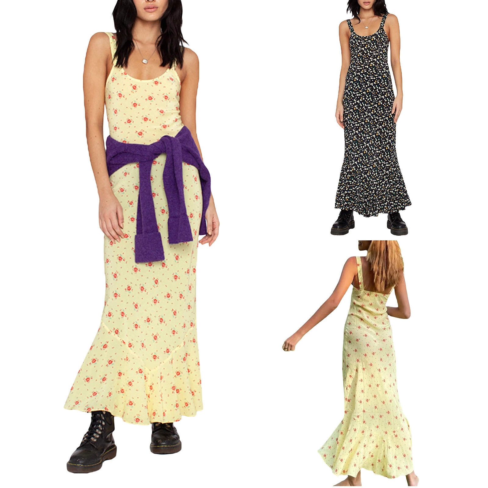 Женское летнее платье без рукавов с цветочным принтом и U-образным вырезом