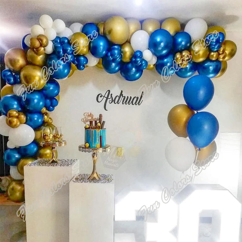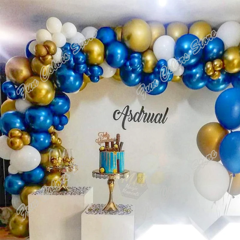 Синий хром (5 дюймов * 30 шт., 10 дюймов * 15 шт., 12 дюймов * 10 шт.)Золото (5 дюймов * 20 шт., 12 дюймов * 25 шт.)Белый (5 дюймов * 15 шт., 12 дюймов * 10 шт.)Бесплатно для вас: 5 м цепочка на воздушный шар * 1Воздушный шар Клей * 100