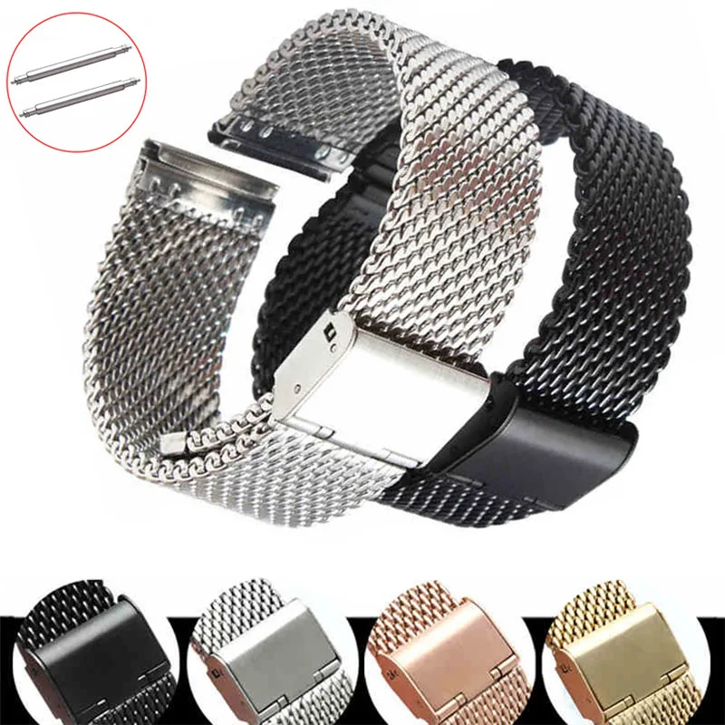 Сетчатый металлический ремешок для часов, из нержавеющей стали, 16 мм, 18 мм, 20 мм, 22 мм, 24 мм