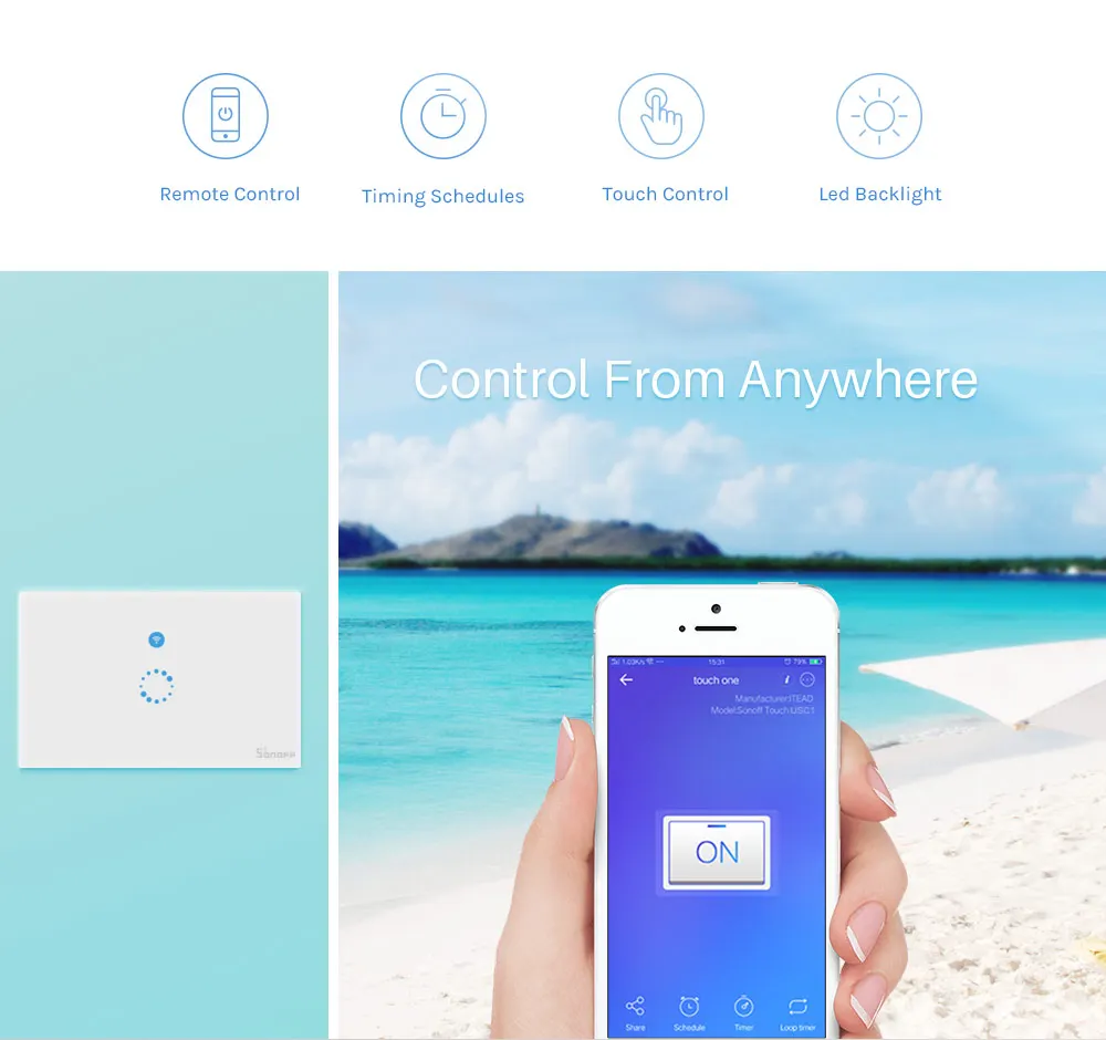 ITEAD SONOFF Touch US Wall Touch Wi-Fi Smart Switch 1Way 1 Gang беспроводной пульт дистанционного управления через eWeLink поддержка Alexa Google Home