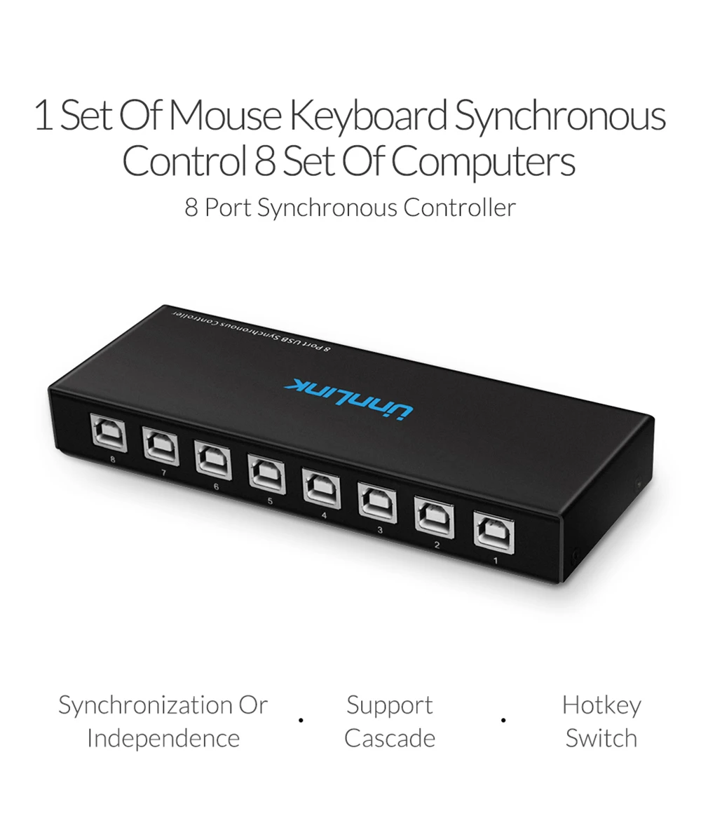 Синхронное управление Unnlink USB 8 портов, ler USB KMV, 1 комплект клавиатуры, мыши, 8 шт.компьютерНоутбукистолы для рабочей станции