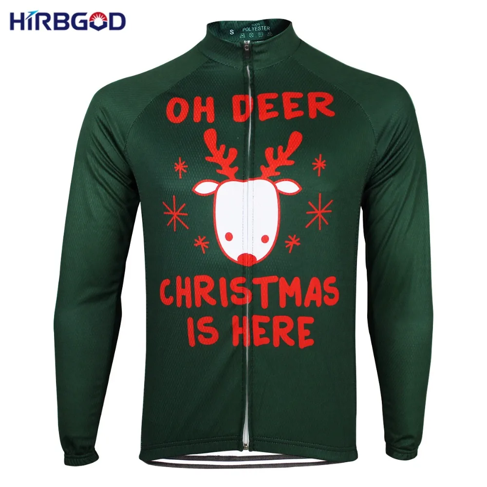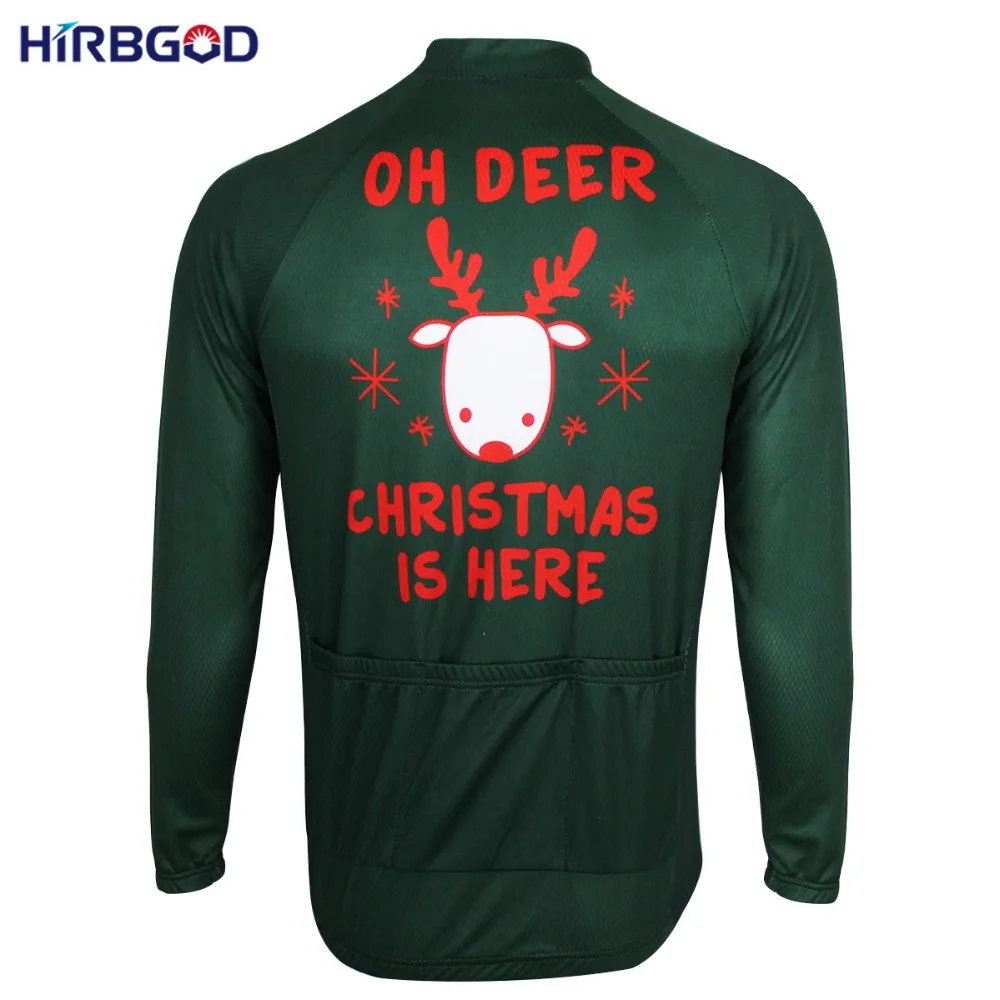 HIRBGOD Мужская велосипедная Джерси с милым оленем, с длинным рукавом, для улицы, дышащая, для верховой езды, Спортивная, горная, осенняя, зеленая, велосипедная одежда, TYZ1506-01