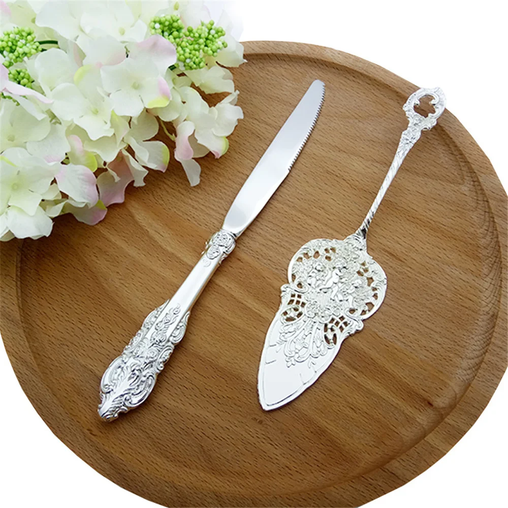 2 шт. набор свадебных ножей для торта, Классические посеребренные с...