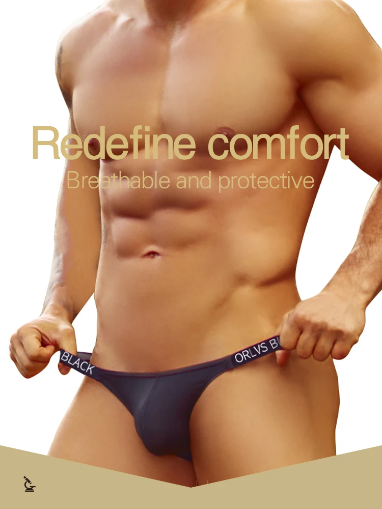 Мужские трусы стринги из модала ORLVS, Черные стринги с низкой талией, бандаж на пенис, сексуальное нижнее белье для мужчин, гей-трусы