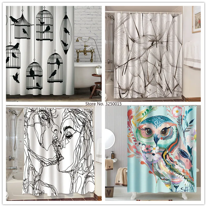 Черно-белые занавески для ванной комнаты, занавески для душа, водонепроницаемые декоративные 3D занавески из полиэстера для двери комнаты, 150180 см