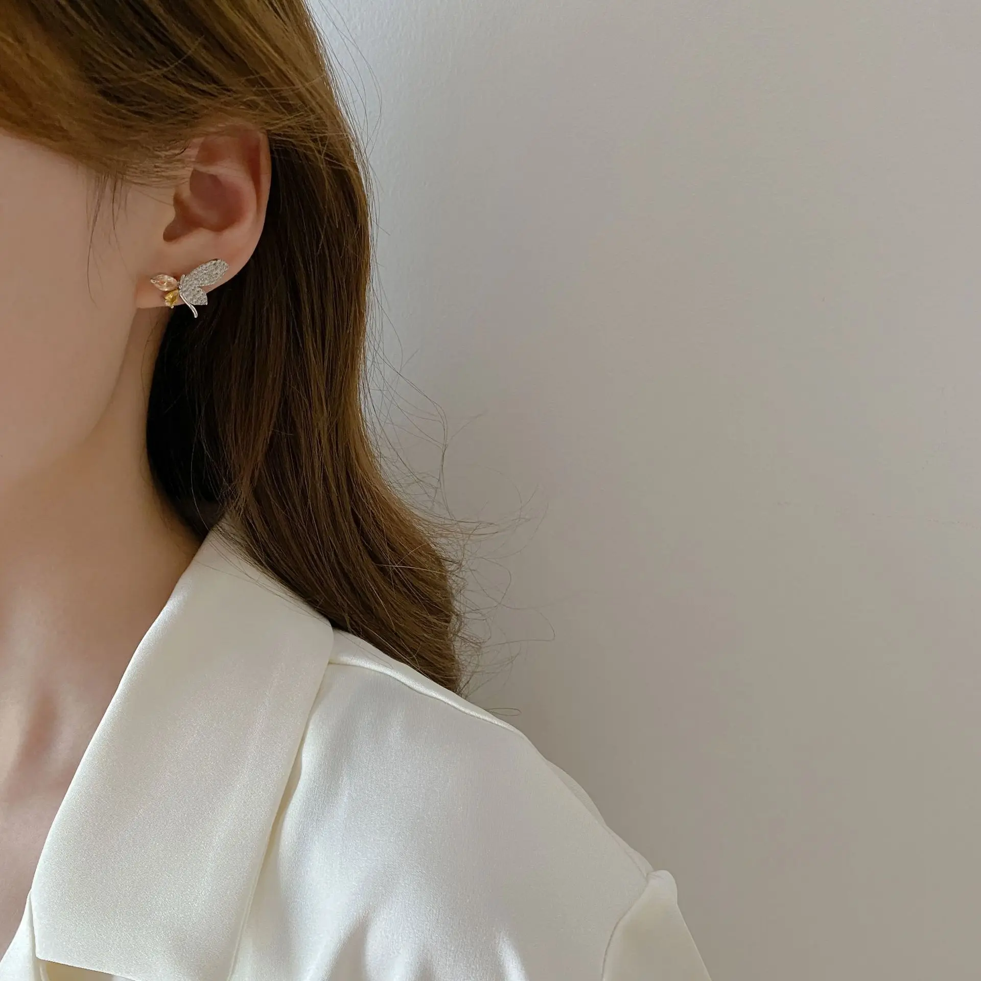 Женские серьги-гвоздики в виде стрекозы с кристаллами