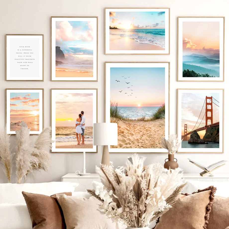 Пляж закат Дерево пара вид на море Рид автомобиль настенная живопись холст постеры и принты Декор для гостиной скандинавский стиль украшения