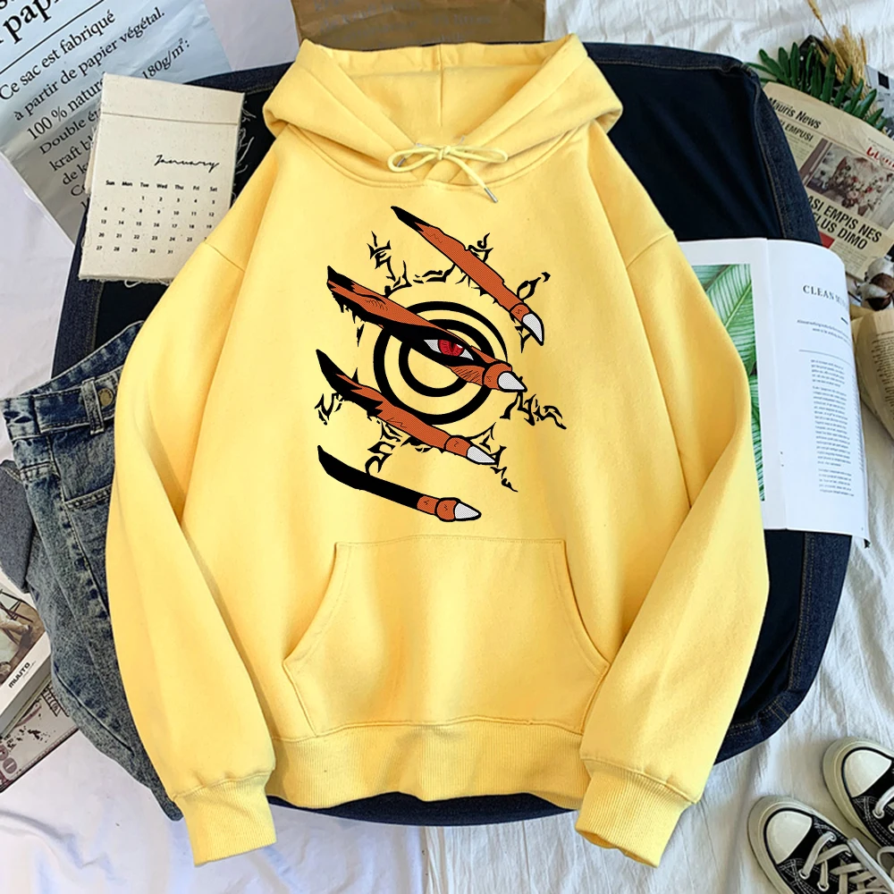 Толстовка с капюшоном с японским аниме девять хвостов, пуловер с ри...