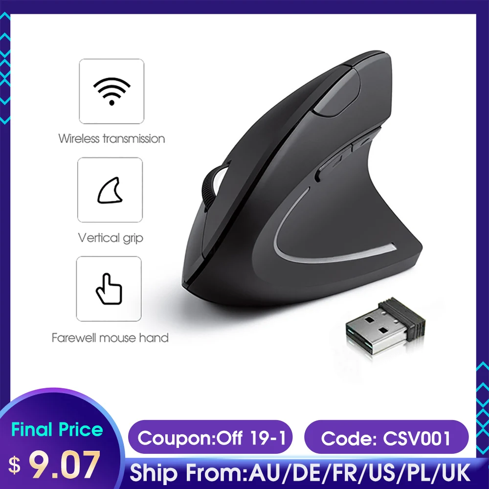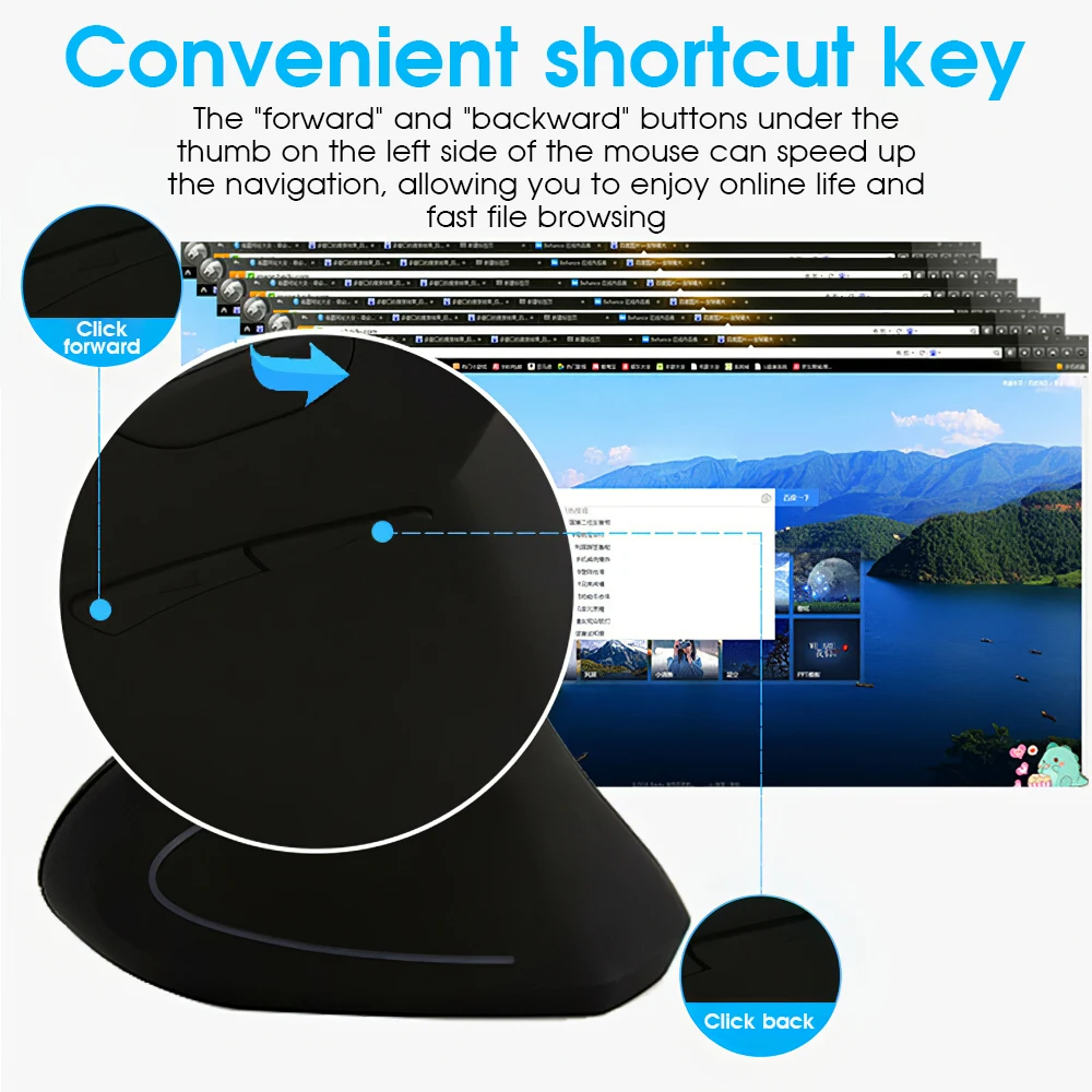 Мышь Компьютерная Вертикальная беспроводная, 1600DPI, USB