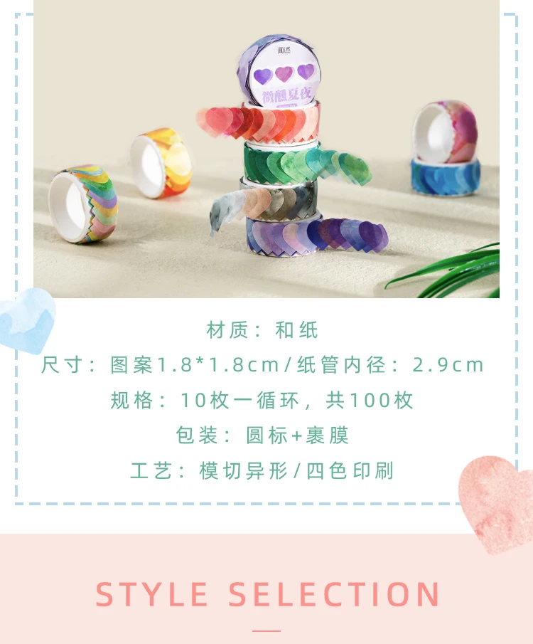 100 шт.лот кавайная Васи-лента градиентная наклейка с любовным серд...