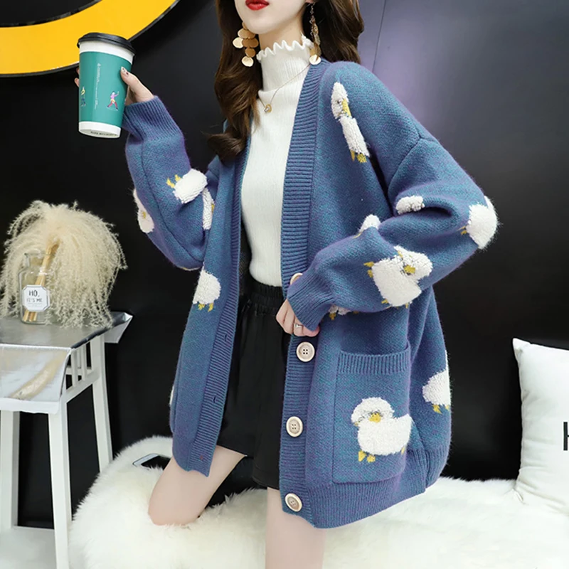 Женский утепленный свитер, Свободный кардиган в Корейском стиле, 20...