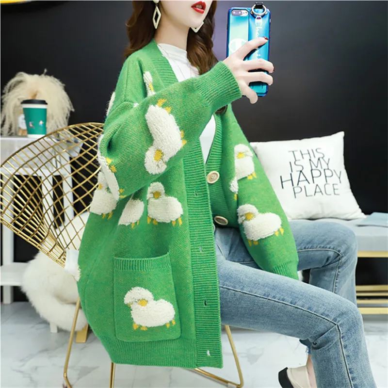 Осень-зима вязаный женский кардиган свободный уличная вязаный свите...