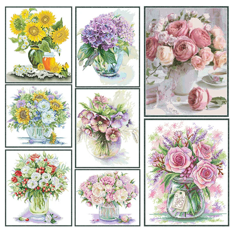 Набор цветочной вазы, вышивка крестиком, наборы для рукоделия, неспечатный холст, 11CT 14CT, сделай сам, ремесла, домашний декор, картины