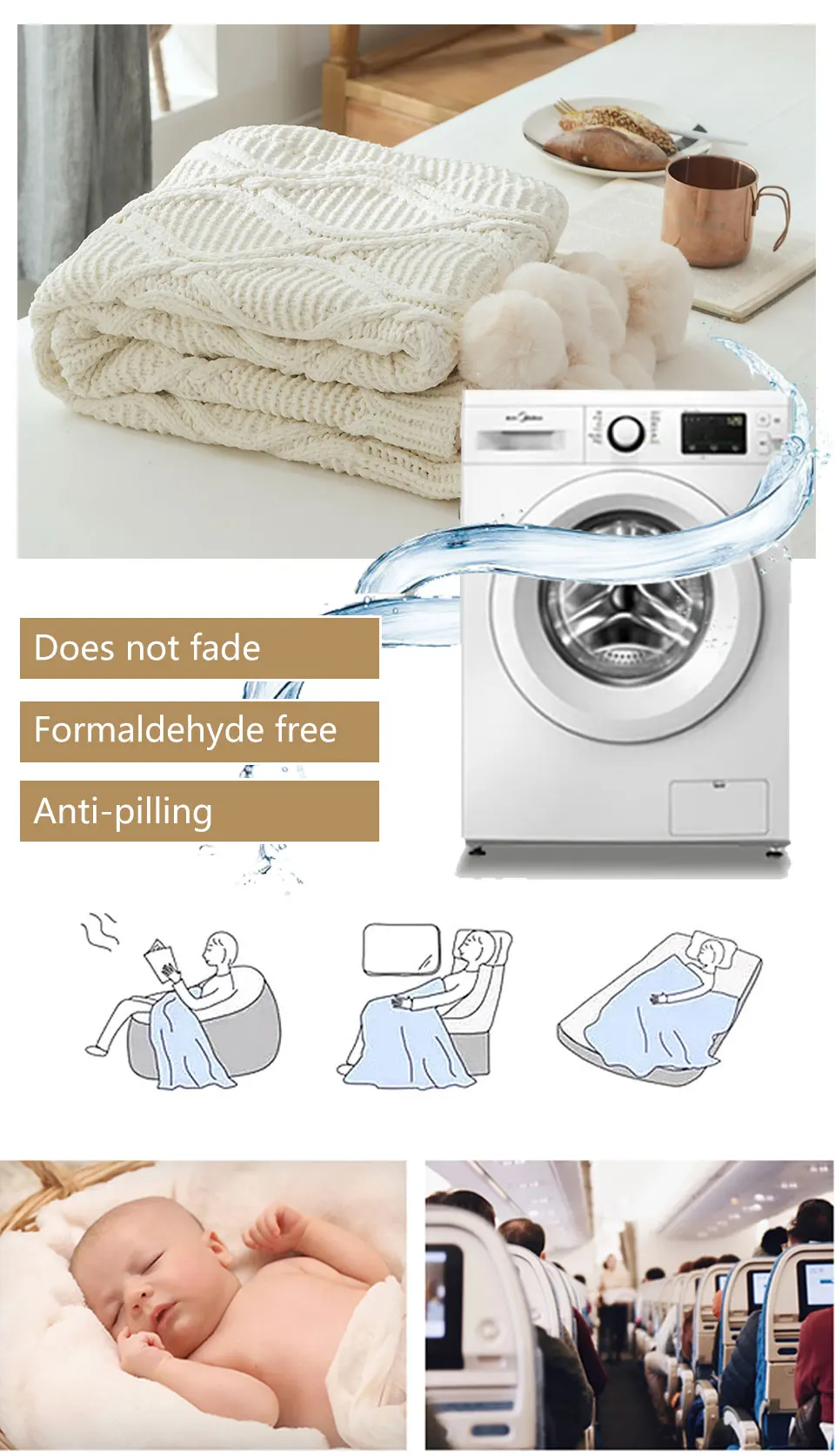 Особенности: Практичное и многофункциональное, это может быть одеяло для отдыха, дорожное одеяло, одеяло для сна, также может использоваться как одеяло для дивана, декоративное одеяло. Волокно очень мягкое и качественное, подарит вам тепло в холодные дни, а пушистый шар делает его более милым.
