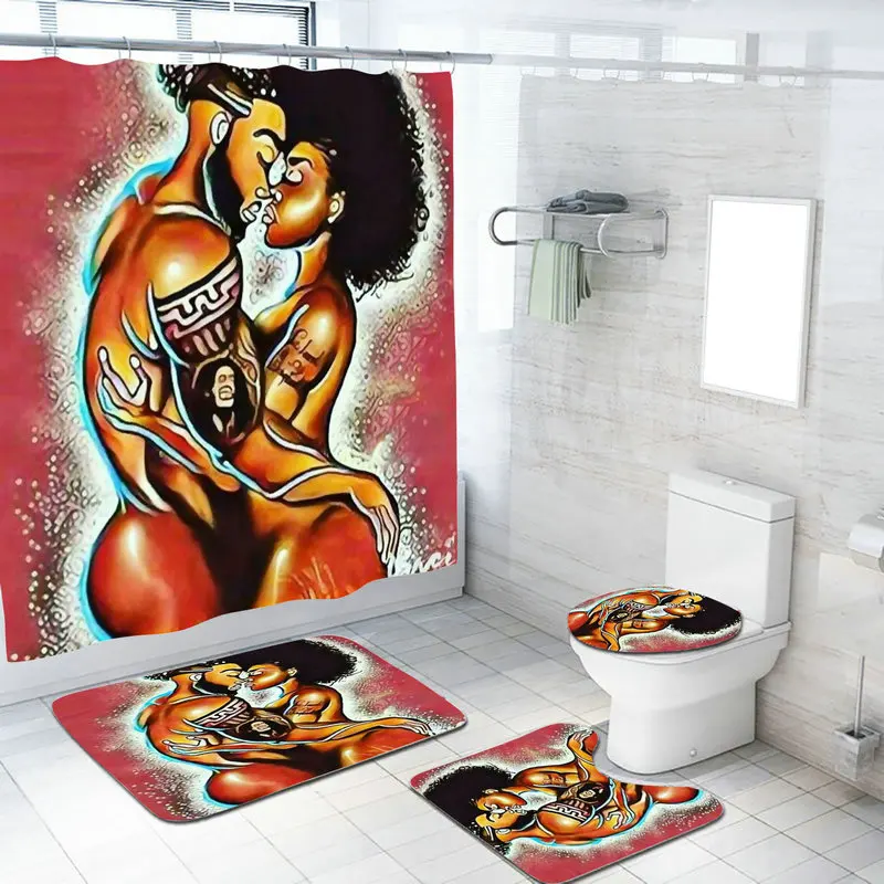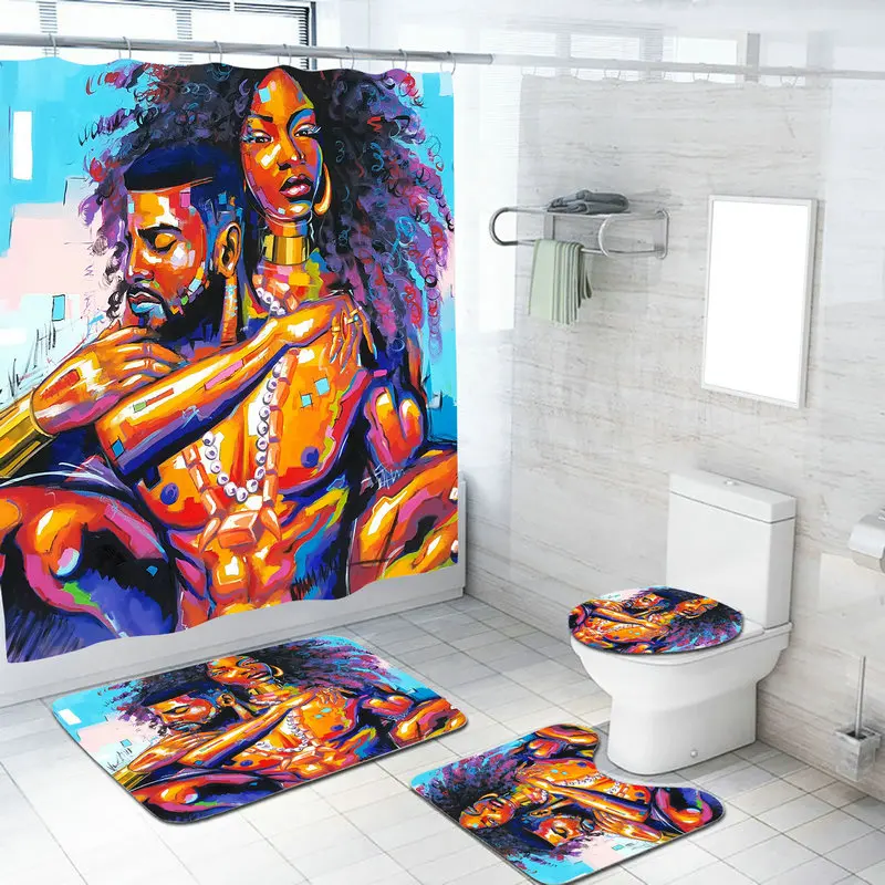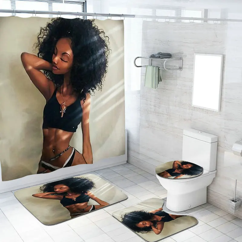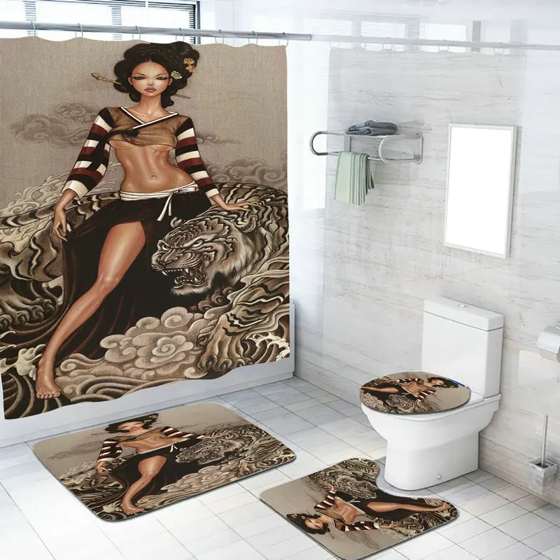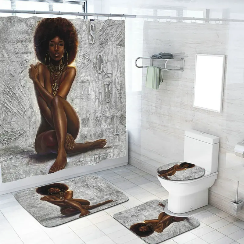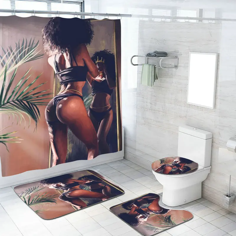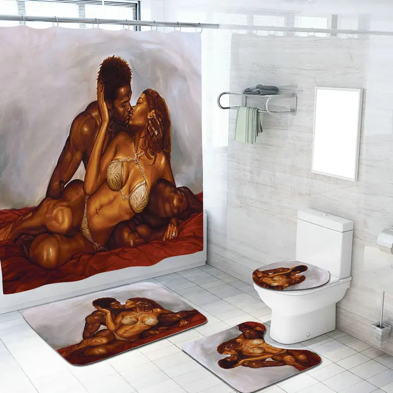 Сексуальная Женская и мужская занавеска для душа, водонепроницаемая Полиэстеровая занавеска, большой 3D принт, затемненная занавеска для ванной комнаты, набор ковриков для ванной, 4 шт.