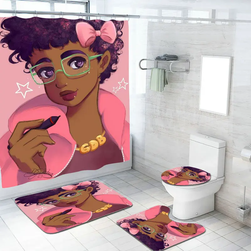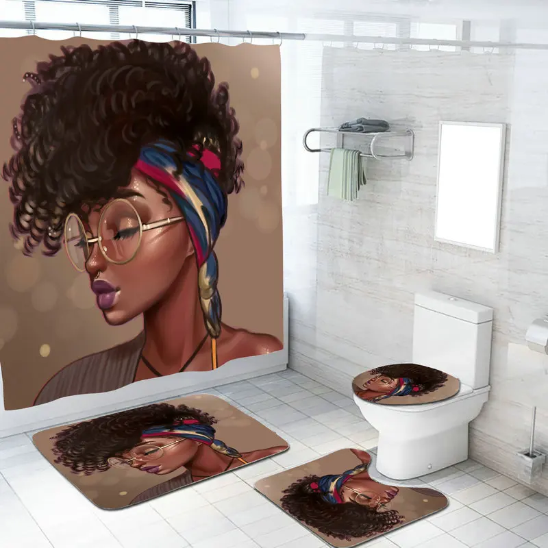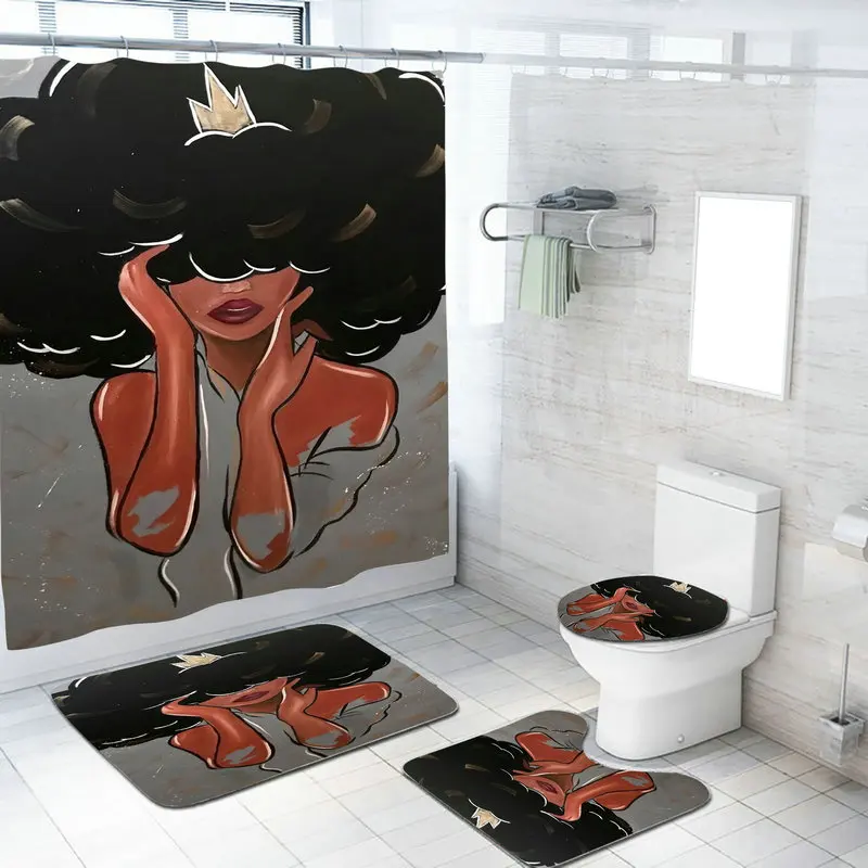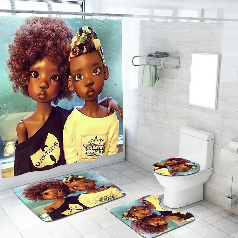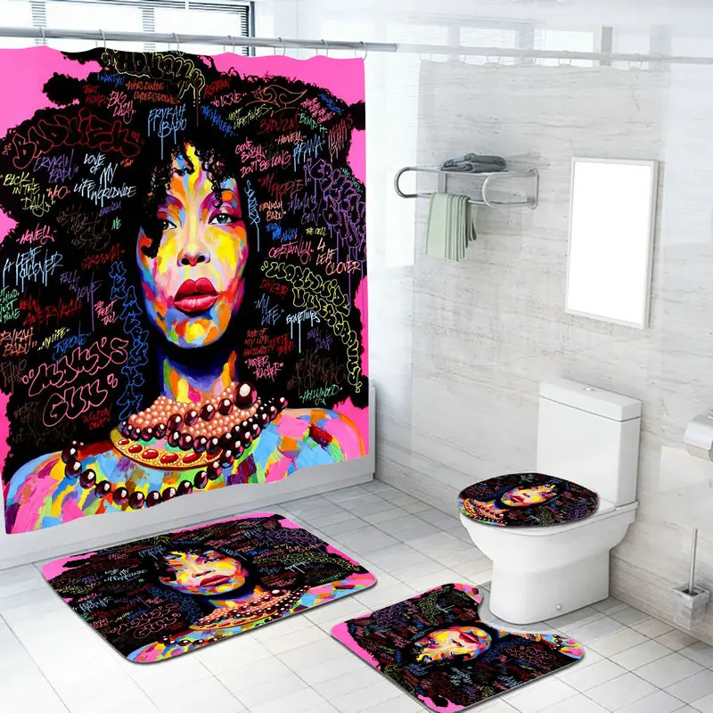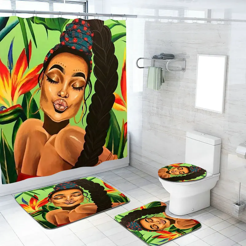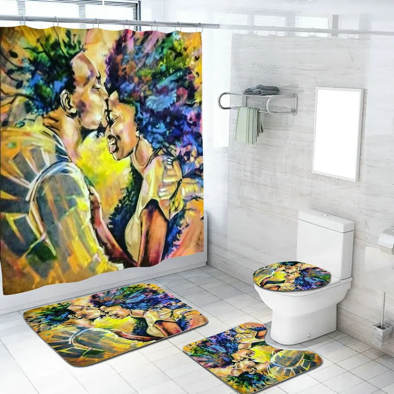 Сексуальная Женская и мужская занавеска для душа, водонепроницаемая Полиэстеровая занавеска, большой 3D принт, затемненная занавеска для ванной комнаты, набор ковриков для ванной, 4 шт.