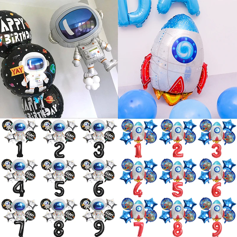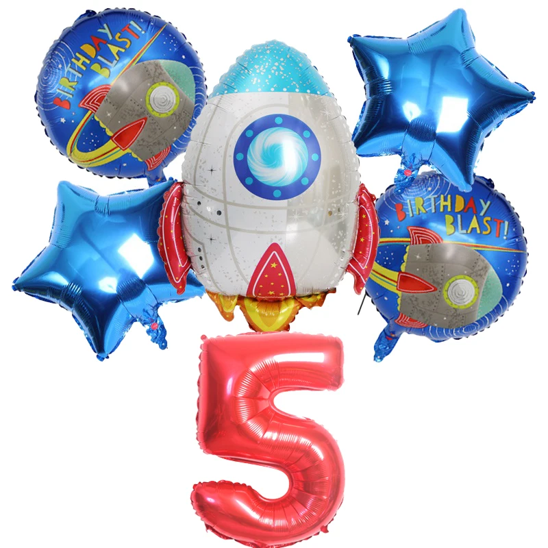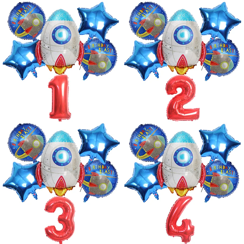 6 шт. 32 дюймов цифровой Алюминий Фольга ракеты звезды астронавт конфетти для воздушного шара латекса комплект День рождения украшения детей Baby Shower