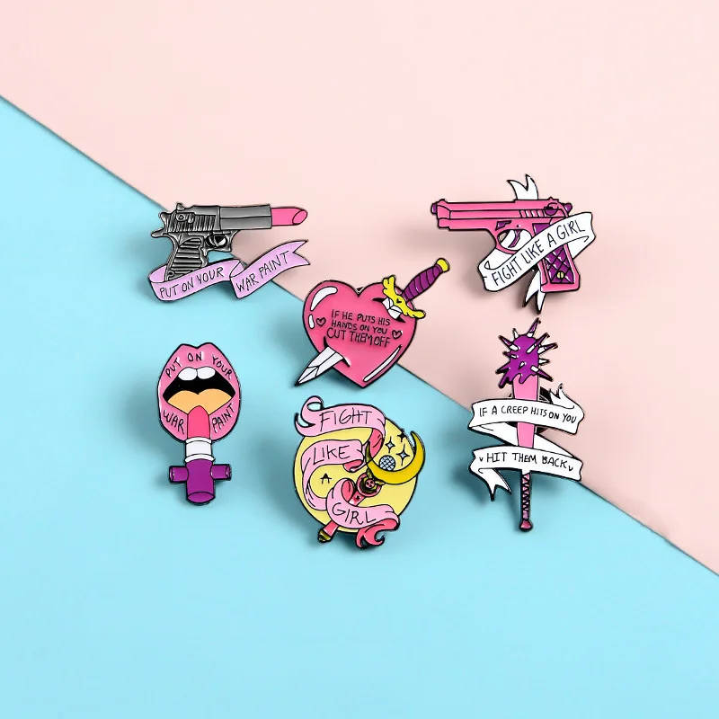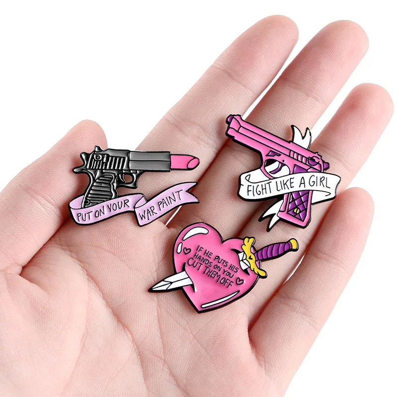 Креативная розовая лента в виде пистолета, помады, надписи, наденьте на вашу войну, краска, брошь, аксессуары, значок на шляпу, эмалированные значки, булавки